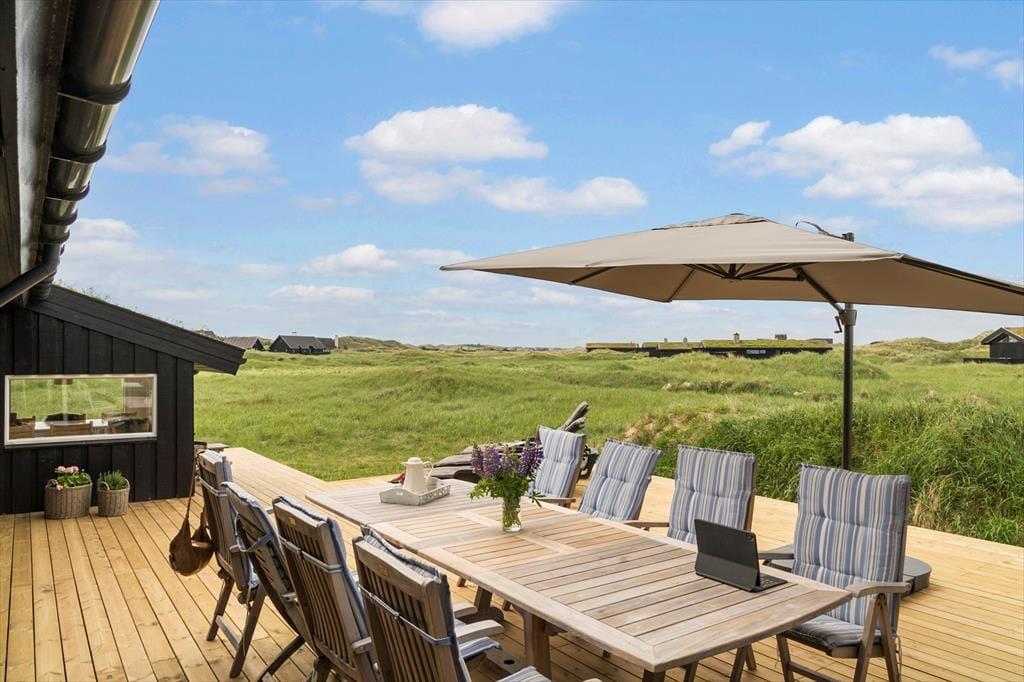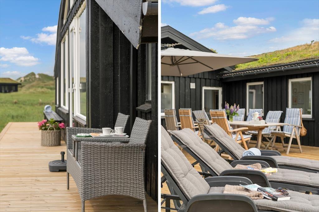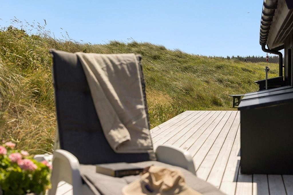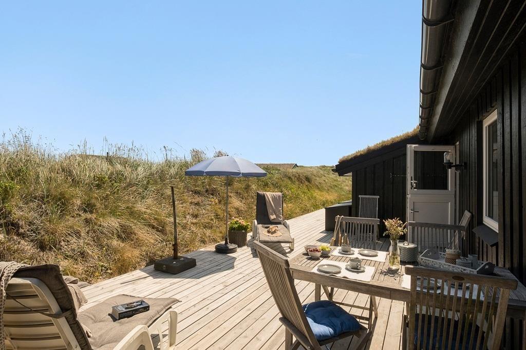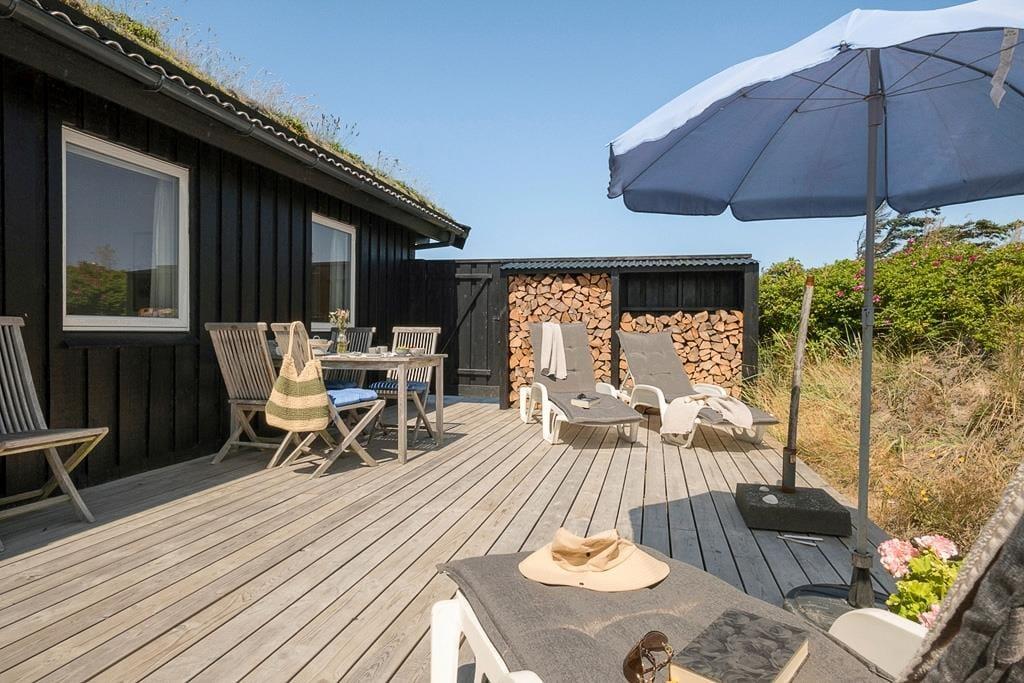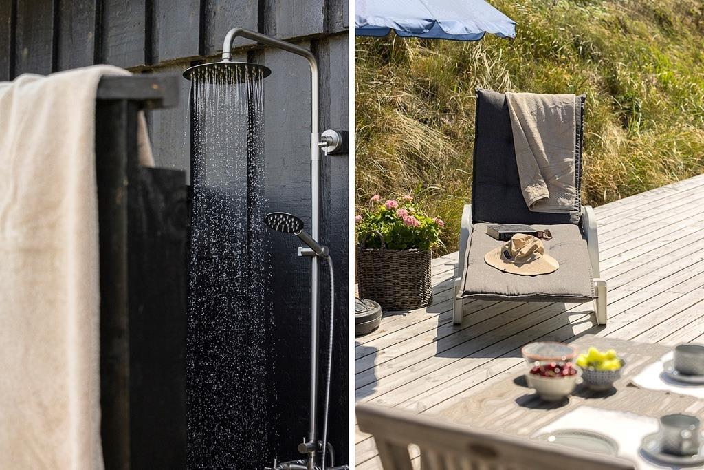 Når vejret er godt, er det svært at lade være med at tilbringe tid udendørs. Den flotte terrasse, der er omgivet af den naturskønne grund, er det perfekte sted at nyde morgenkaffen eller et godt glas vin om aftenen. Terrassen er privat og giver jer mulighed for at nyde privatlivet, samtidig med at I kan lade jer forføre af naturens skønhed. Den rolige beliggenhed på grunden skaber en fredfyldt oase, hvor I kan finde ro og lade batterierne op – hvad enten I vælger at læse en bog, tage en lur i solen eller sidde og lytte til naturens lyde. Som en ekstra luksus kan I tage en forfriskende udebruser med varmt vand under åben himmel.