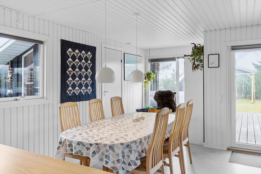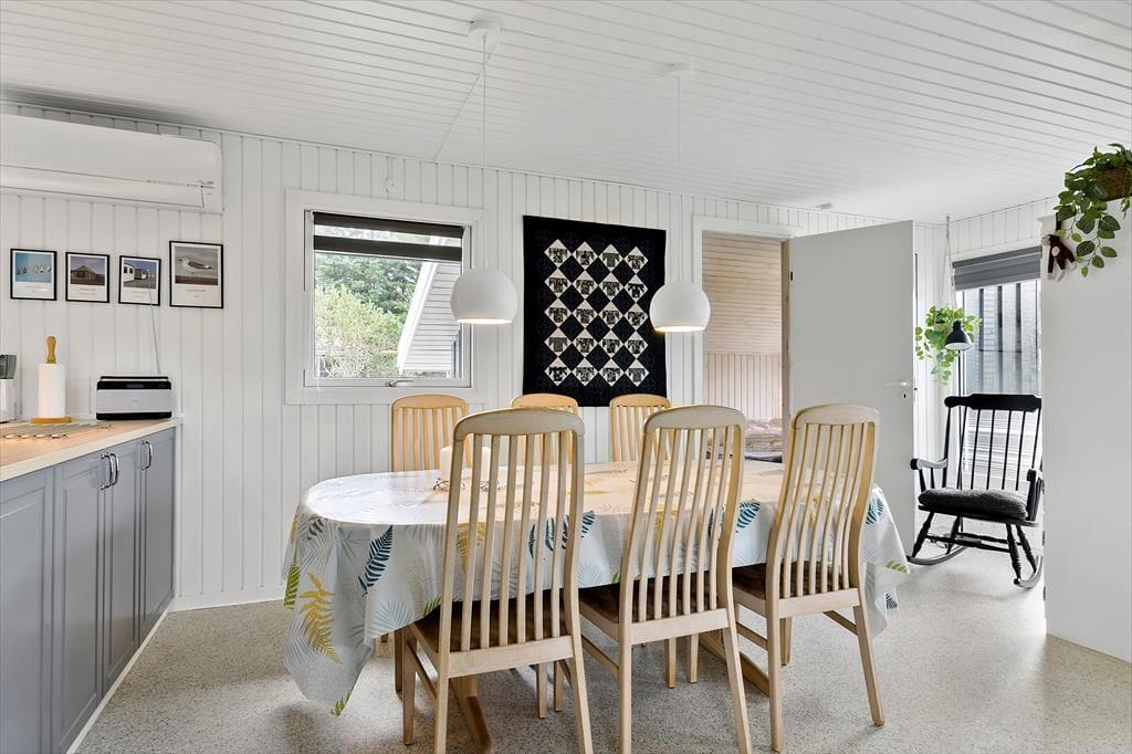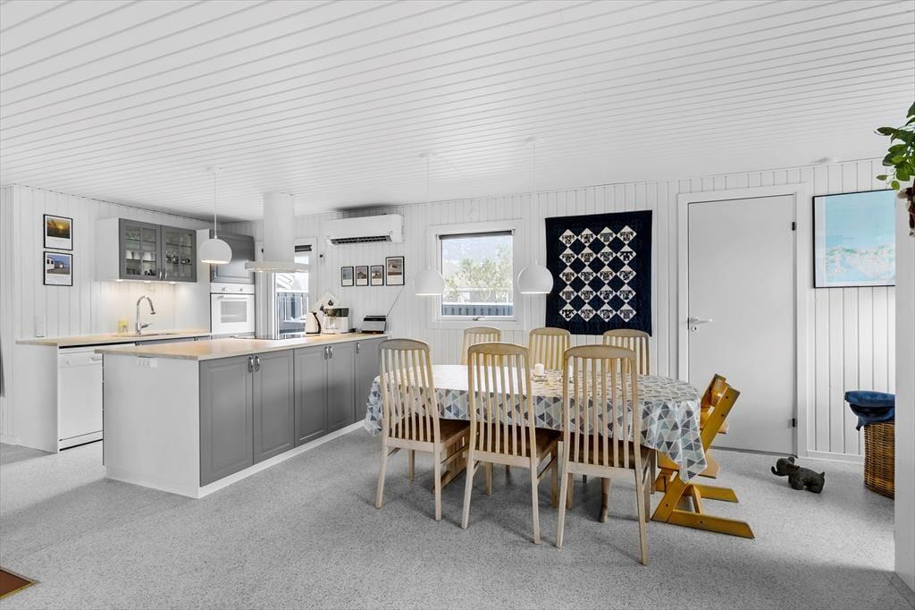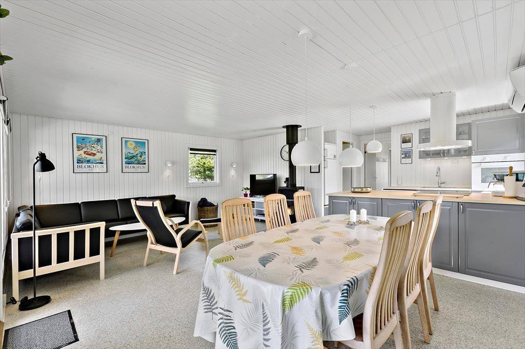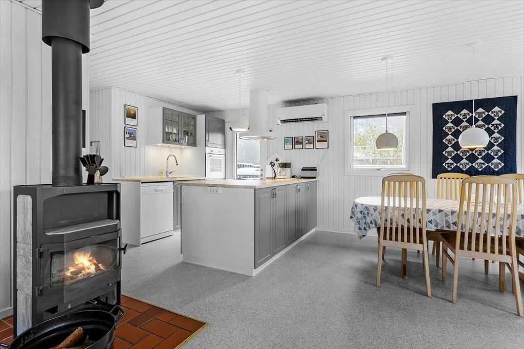 Indenfor i sommerhuset venter jer en indbydende og rummelig atmosfære med masser af hygge. Den centrale brændeovn skaber en varm og hyggelig stemning, hvor I kan samles om en god bog, et brætspil eller en film. Det åbne køkken gør det nemt at tilberede måltider sammen, og den store spiseplads indbyder til hyggelige fælles måltider. De tre soveværelser er komfortable og indrettet med sans for detaljen, så I kan få en god nats søvn efter en aktiv dag i naturen. Huset er ideelt til at skabe uforglemmelige ferieoplevelser sammen med dem, du holder af.