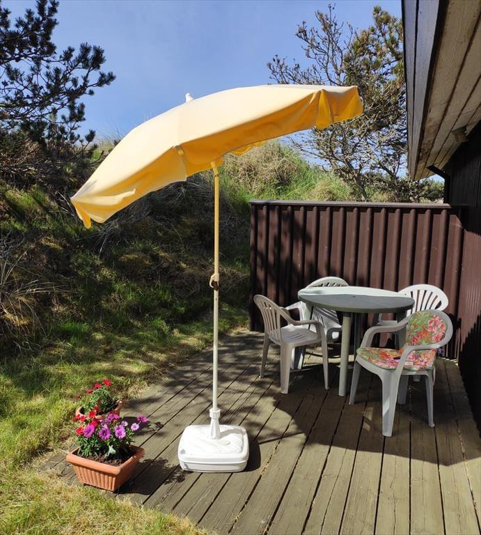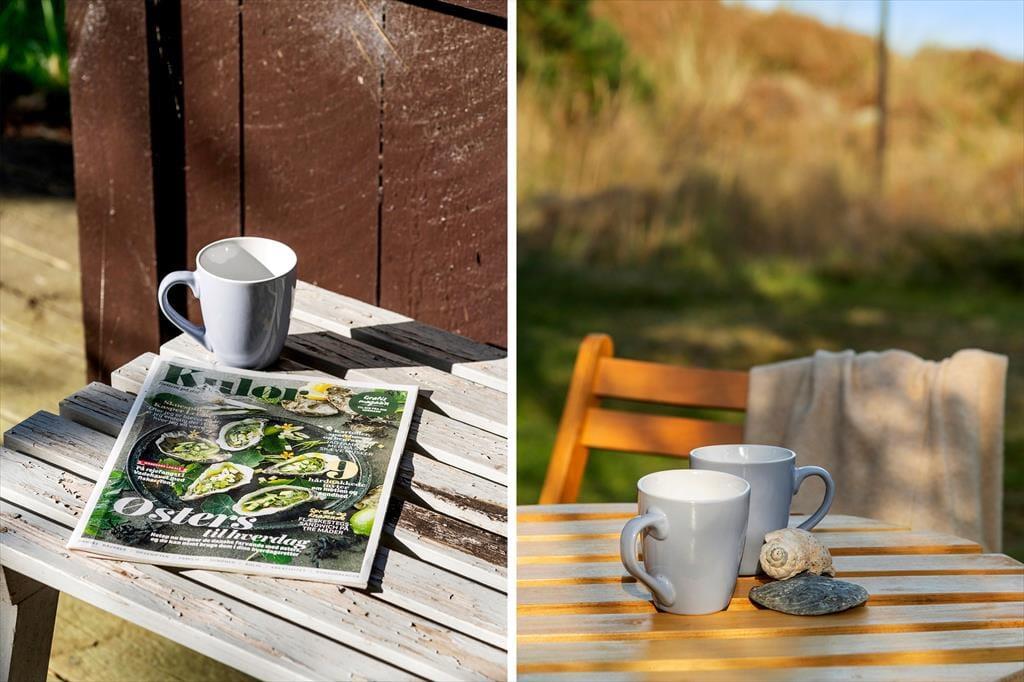Terrassen er et skønt sted at tilbringe dine dage, uanset om du vil nyde morgenkaffen i solen eller afslutte dagen med et glas vin, mens solen går ned over landskabet. Grunden byder på et havkig, der minder dig om, at havet kun er en kort køretur væk. Herude kan du læne dig tilbage og virkelig mærke naturens ro – og måske endda spotte nogle af områdets mange fugle. Den lukkede have gør det let at finde læ, selv på en blæsende dag, og giver jer mulighed for at være helt uforstyrrede.