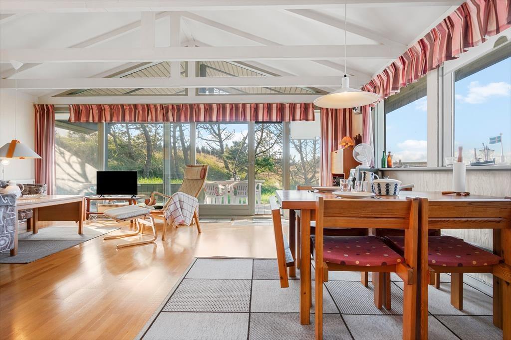 Sommerhuset ligger i Rødhus, et fredeligt område, hvor naturen er i højsædet. Blokhus by og stranden er kun en kort køretur væk, hvor du kan gå lange ture ved Vesterhavet eller tage en dukkert i det klare vand. Hvis I er til udflugter, er Rødhus Klitplantage et oplagt sted at udforske, og de lokale gårdbutikker byder på masser af kulinariske fristelser. Med både ro, natur og nærhed til de lokale attraktioner, er Flaskehalsen 1 et ideelt udgangspunkt for en ferie, hvor I virkelig kan komme ned i gear og nyde hinanden.