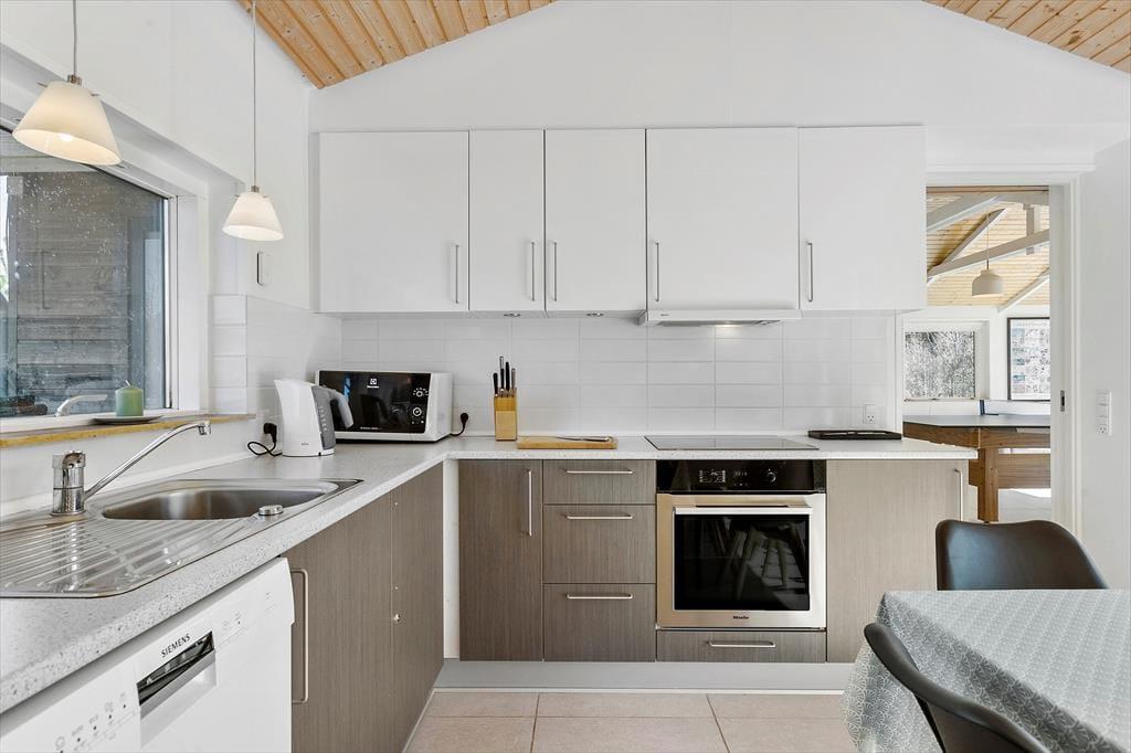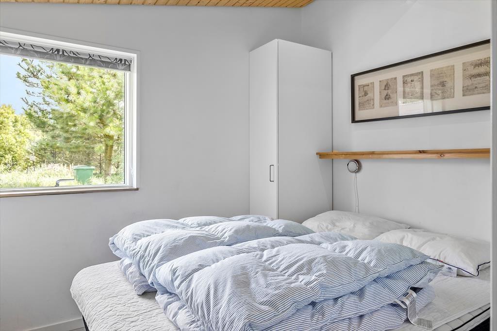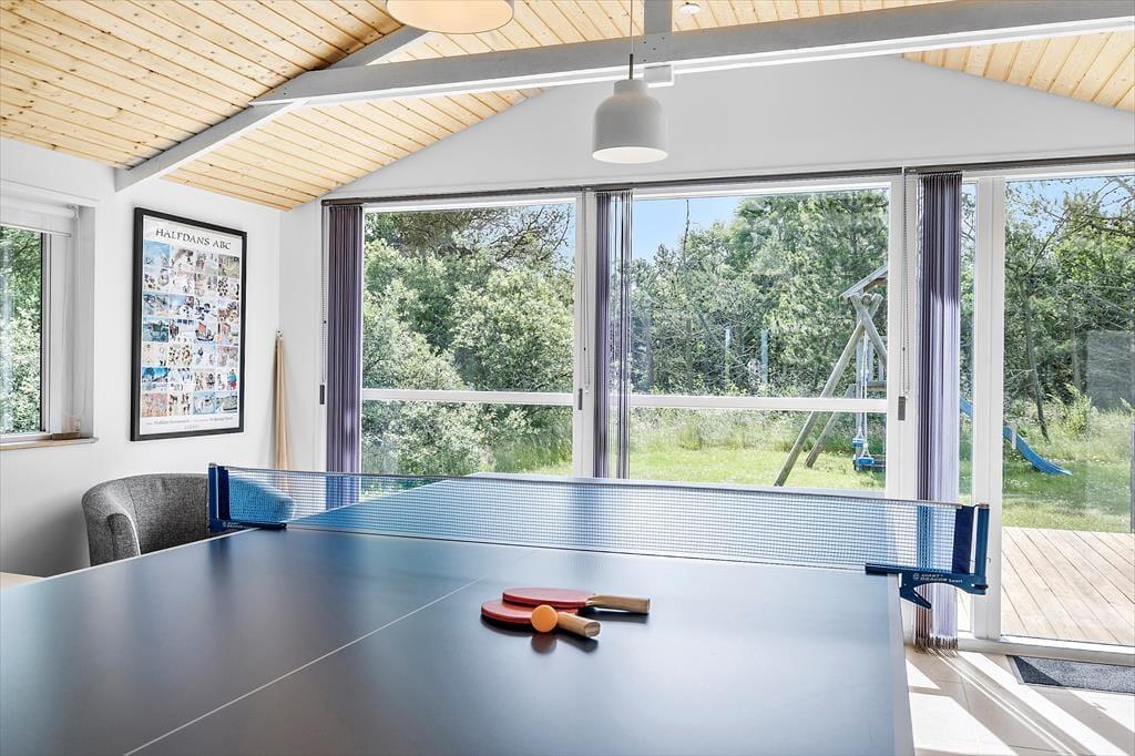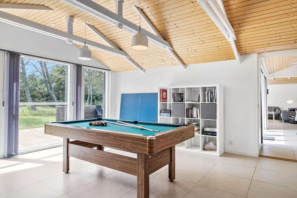 Huset har masser af plads og er praktisk indrettet med store åbne rum. De store vinduer lukker det flotte lys ind i alle kroge i huset og giver en behagelig stemning. Her er alle moderne fornødenheder og ekstra komfort og hygge i form af karbad, brændeovn og lynhurtig internet, samt et hyggeligt aktivitetsrum med poolbord, som kan blive samlingspunkt for hele familien. I den primære stue er lækre sofaer så man kan slappe af foran tv’et. Værelserne ligger fordelt i hver sin ende af huset med nye lækre senge, så det er muligt at dele sig op, hvis man vælger at tage to familier afsted sammen.