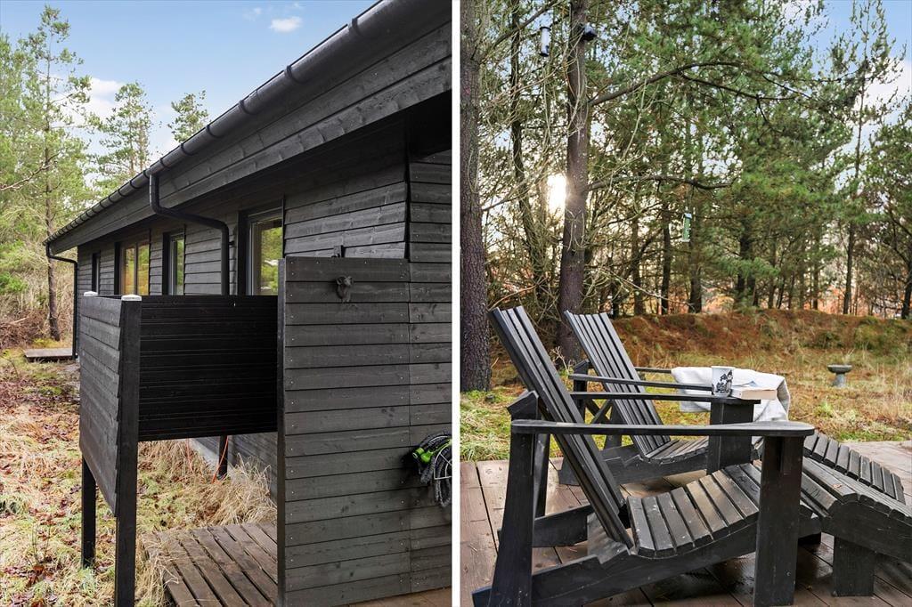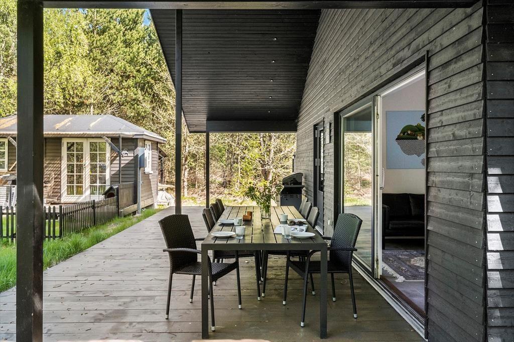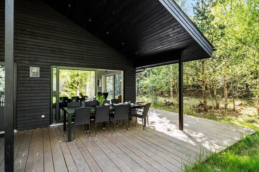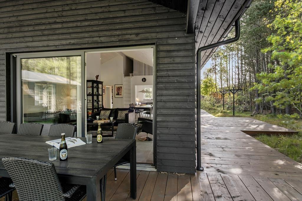 Sommerhuset har flere terrasser, som gør det nemt at nyde livet udenfor, uanset om du vil dase i solen eller finde skygge under et overdækket areal. Terrasserne ligger omkranset af træer, så du får en fornemmelse af at være midt i naturen. Her kan du tænde op i grillen og nyde lange aftener under åben himmel, mens fuglene synger i baggrunden. Grunden er stor og privat, og der er masser af plads til, at børnene kan lege og boltre sig, mens de voksne slapper af.