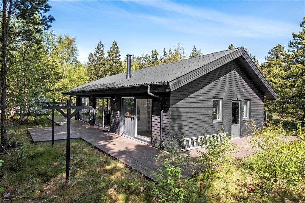 I dette moderne sommerhus for enden af en blind vej kan du og familien nyde en ferie omgivet af naturens ro. Sommerhuset ligger i Rødhus, et fredeligt område tæt på klitter, skov og strand, og med en skøn planløsning og flere gode terrasser er det perfekt til en afslappende ferie med tætte venner eller familien.