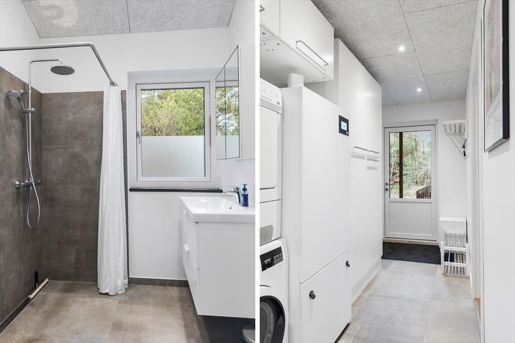 Det moderne design og den gennemtænkte planløsning sætter rammen om ferielivet i dette dejlige sommerhus. Huset byder på lyse opholdsrum med store vinduespartier, der lukker naturens lys og farver helt ind. Det åbne køkken-alrum er husets hjerte, hvor du kan samles med familien omkring madlavning og hyggelige middage. Den rummelige stue indbyder til afslapning med en god bog eller en film, mens brændeovnens varme spreder hygge. Med tre soveværelser og to badeværelser er der god plads til hele familien, og et praktisk bryggers gør det nemt at holde styr på hverdagslogistikken.