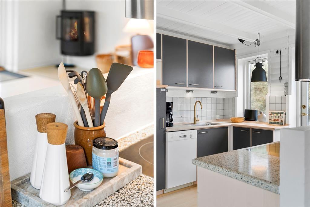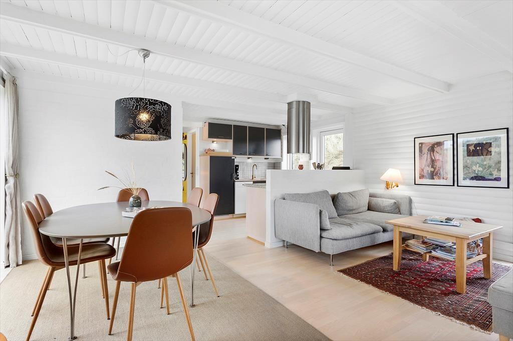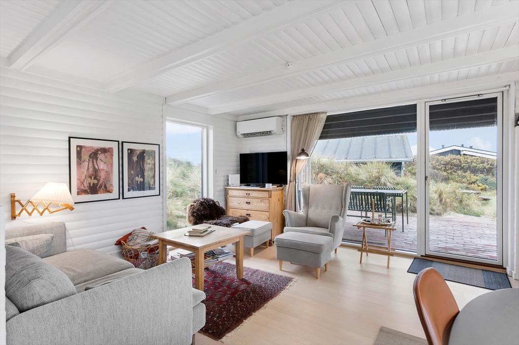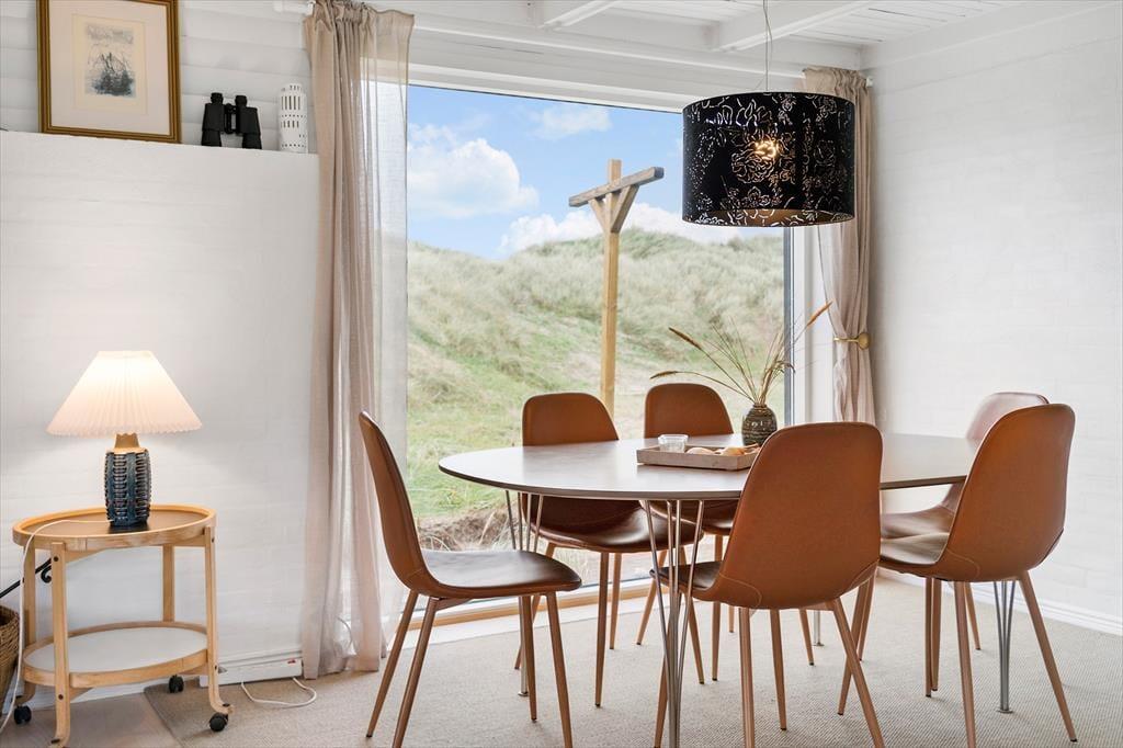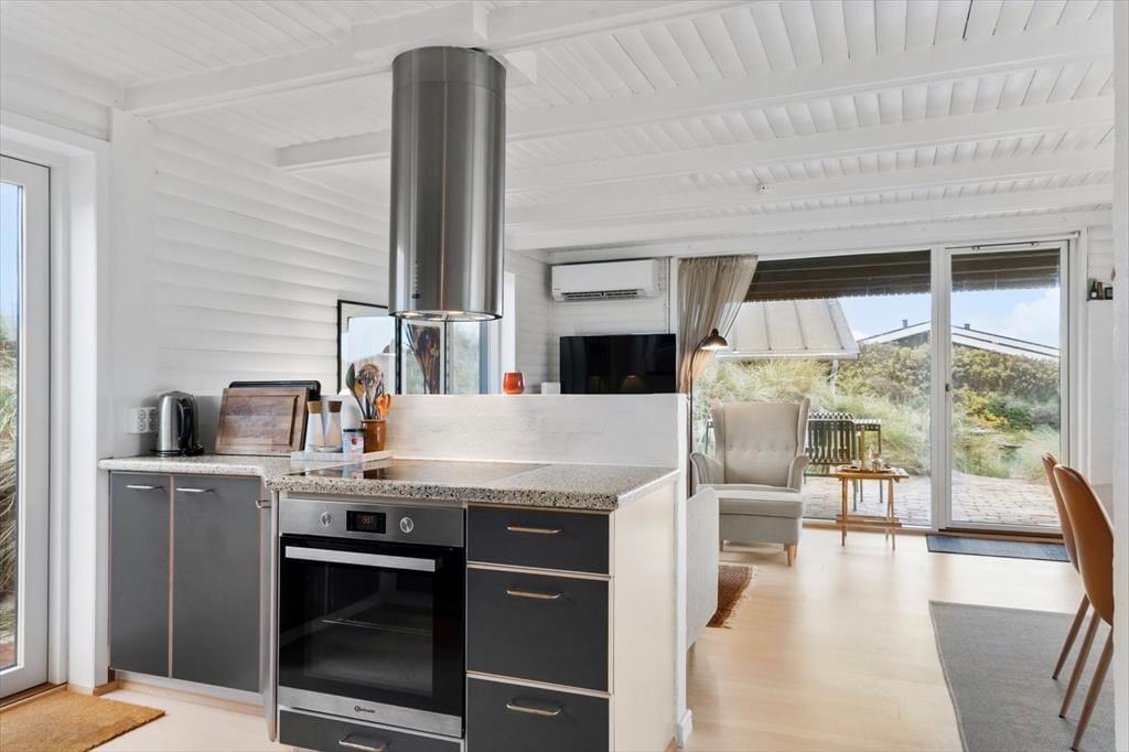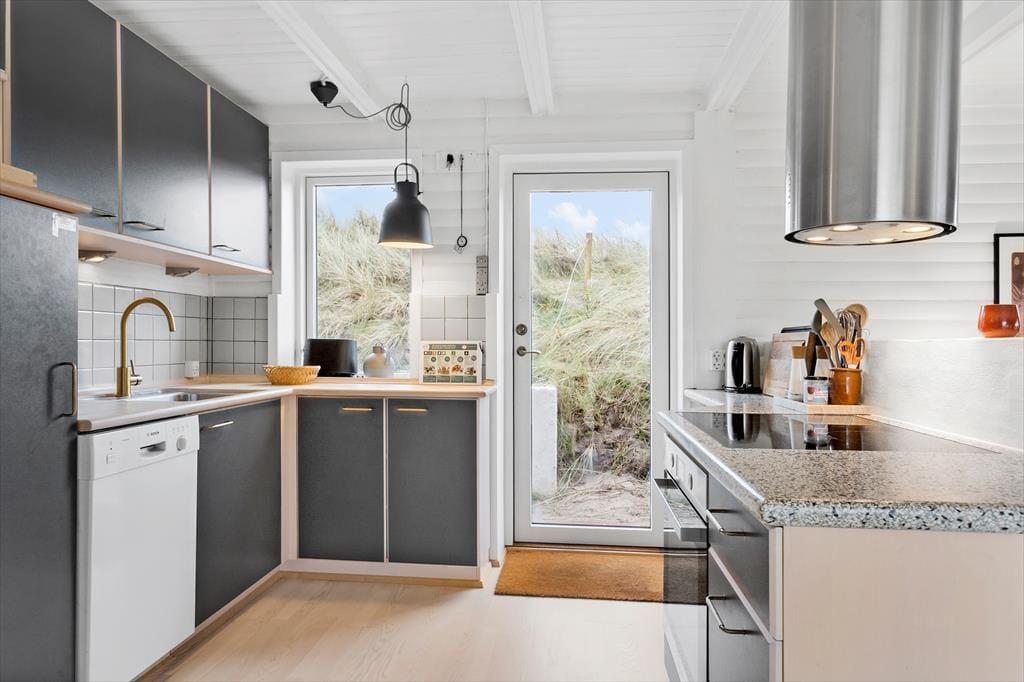 Seneste renovering af sommerhuset foregik i 2021, og inde bag den flotte træfacade fremstår rummene lyse og indbydende, mens det pæne interiør er med til at højne både komfortniveauet og hyggestemningen. I entréen er der både vaskemaskine og tørretumbler, og det åbne køkken har opvaskemaskine og godt med arbejdsplads, så I fint kan være flere om at lave mad. Stuen indbyder til tilbagelænet hygge i sofaafdelingen, og fra spisepladsen kan I sidde og kigge lige ud i klitterne, mens I nyder varmen fra brændeovnen og varmepumpen. Fra husets tre soveværelser kan I også beundre klitlandskabet, og der er tilmed havedøre, hvis I vil ud i den friske luft lige fra morgenstunden. Husets anneks byder ikke bare på et ekstra soveværelse, men har også eget bad, så I kan oplagt invitere vennerne med på ferie.
