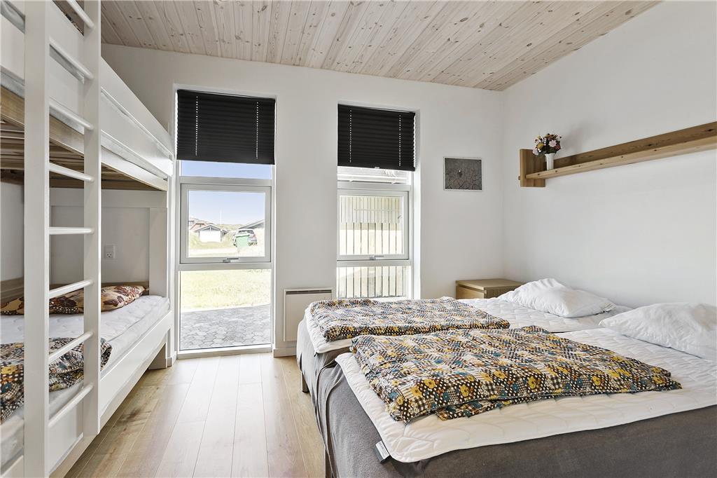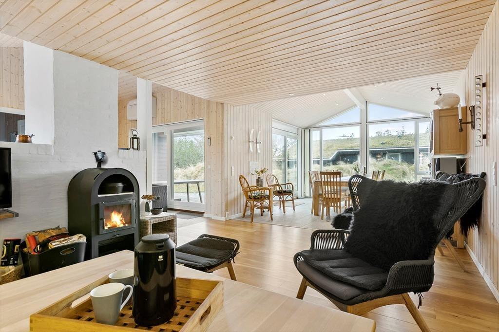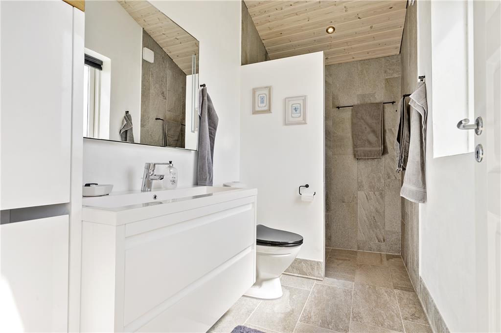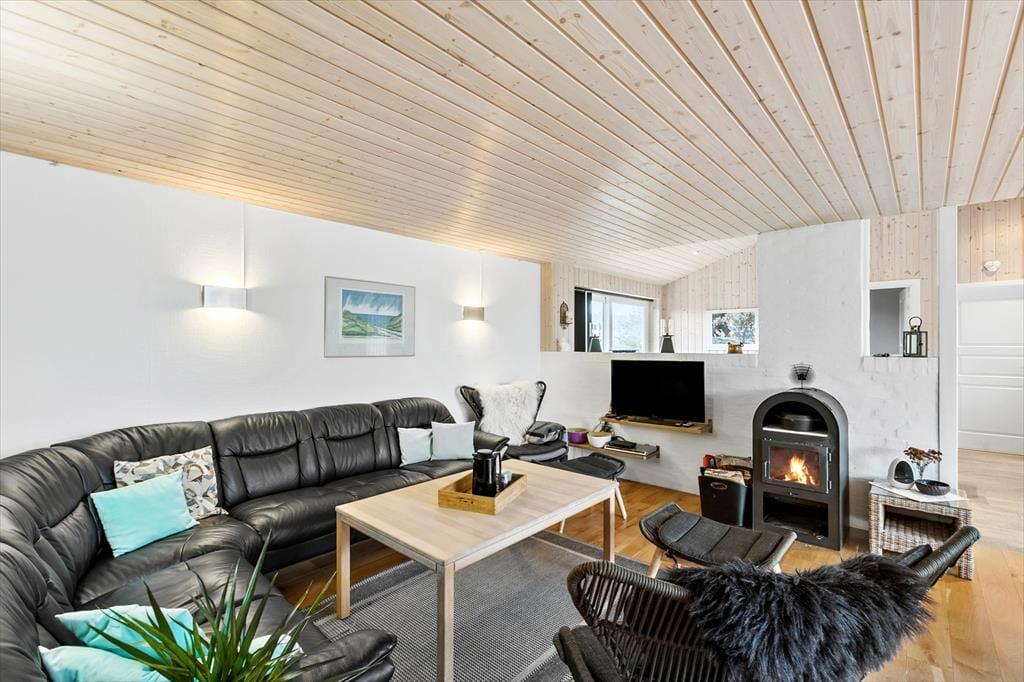 Når du træder ind i sommerhuset, mødes du af et lyst og indbydende rum, hvor naturens lys strømmer ind fra de store vinduer og fylder stuen med varme. Brændeovnen står klar til at sprede hygge på de kølige aftener, og med et spisebord, der let rummer hele familien, er det perfekte sted at samles til middag. De fire soveværelser er holdt i lyse farver og en stilfuld indretning, der giver en følelse af ro. Sommerhusets to badeværelser sørger for, at der er plads til alle, og på det største badeværelse kan du forkæle dig selv i spabadet efter en lang dag med oplevelser. Når du søger afslapning og komfort, finder du den helt rigtige stemning her i dette hus.