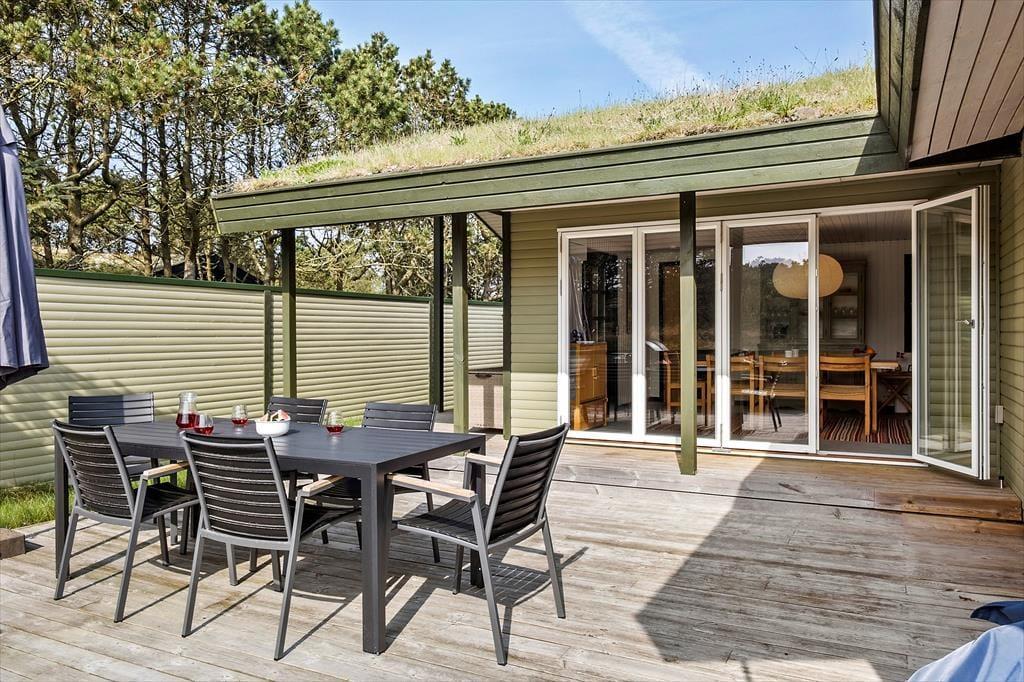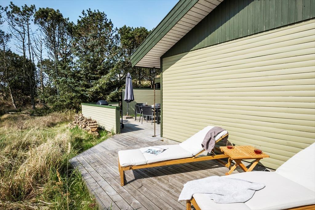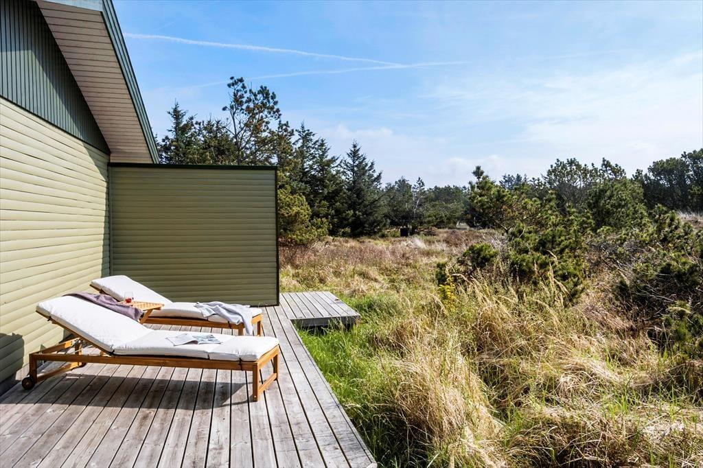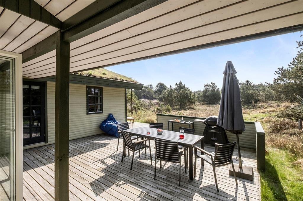 Rundt om sommerhuset er der flere terrasseområder at vælge imellem, så når solen skinner over Rødhus, kan du lige tage en runde for at finde den allerbedste siddeplads. Flere af terrassearealerne er delvist afskærmede, og der er havemøbler, liggestole, en parasol og en grill til rådighed, så du får fine betingelser for driverlivet. Tag en velfortjent pause lige fra morgenstunden med en god kop kaffe og avisen – og slut dagen af med friskgrillet mad og hyggelige samtaler under den lyse sommerhimmel. På alle tidspunkter er det rart at slappe af med udsigt til den store naturgrund og i rolige omgivelser for enden af en lille, lukket stikvej.