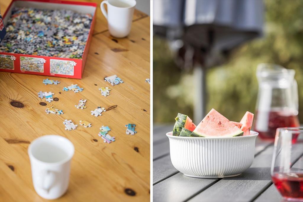 Når du ikke er ude for at udforske Rødhus og omegn, er det skønt at slappe af inde i sommerhuset. Rummene har en rar atmosfære, og der er foretaget flere gode forbedringer – blandt andet er væggene blevet lysnet med hvid maling, og badeværelset er moderniseret, så du kan tage brusebad med et lækkert rain shower og nyde godt af gulvvarmen. Opholdsrummet, hvor stue og køkken er forenet, indbyder til både leg, familienærvær og hvile, og derfor er det helt op til dig og dine kære, hvad ferietiden skal bruges på. Brændeovnen bliver sikkert et hit, hvis du er her, når det er køligt i vejret, mens terrassedørene formentlig vil blive taget flittigst i brug i sommersæsonen.