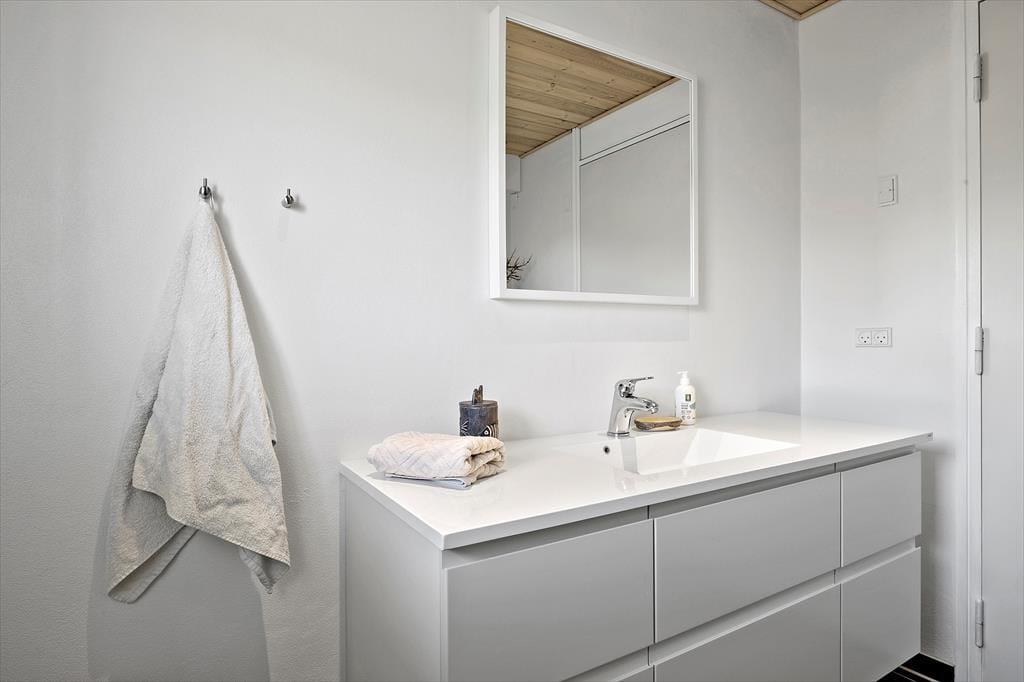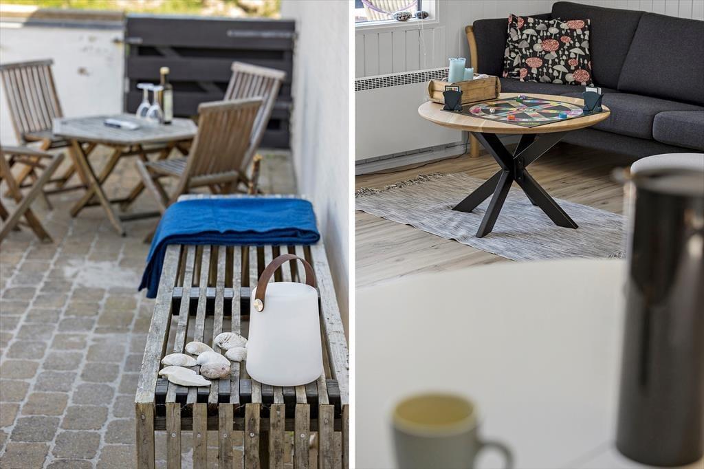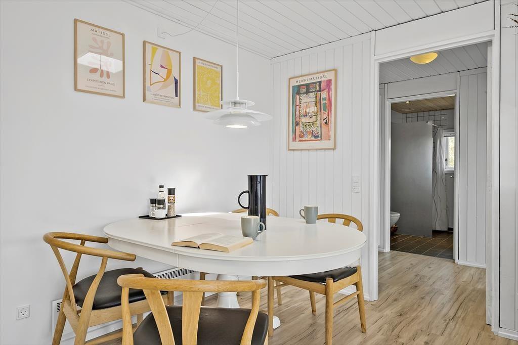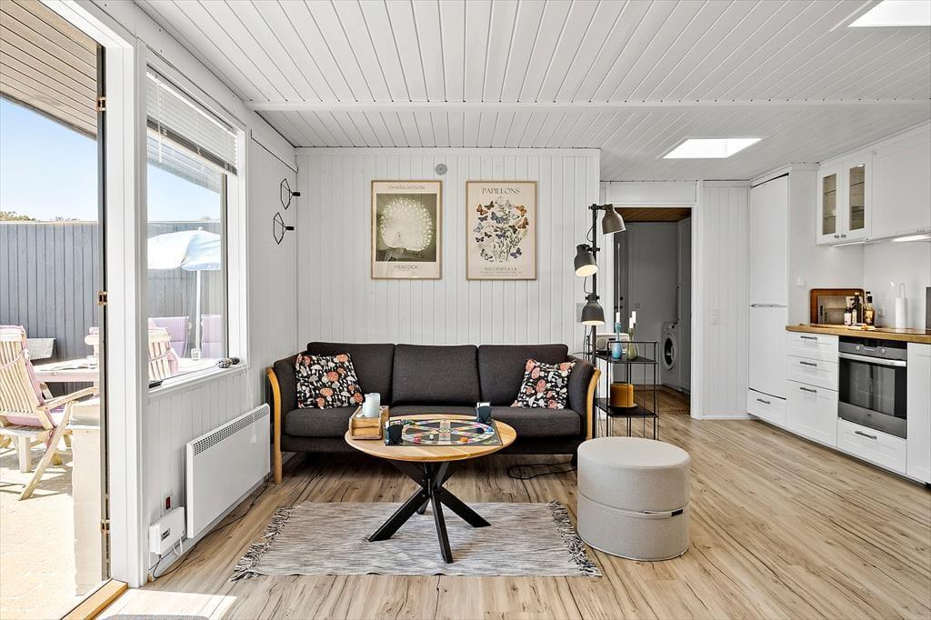 Når I træder indenfor i dette hyggelige sommerhus, vil I straks mærke den varme og indbydende stemning. De store vinduespartier lader lyset strømme ind og giver en fantastisk udsigt til den omkringliggende natur. Stuen er rummelig og indrettet med komfortable møbler, hvor I kan slappe af foran brændeovnen på kølige aftener eller nyde en god film. Køkkenet er åbent og veludstyret, hvilket gør det nemt at tilberede lækre måltider med lokale råvarer. I det lyse soveværelse og den hyggelige alkove er der plads til både par og små familier, der ønsker en afslappende ferie med fokus på hygge og nærvær.
