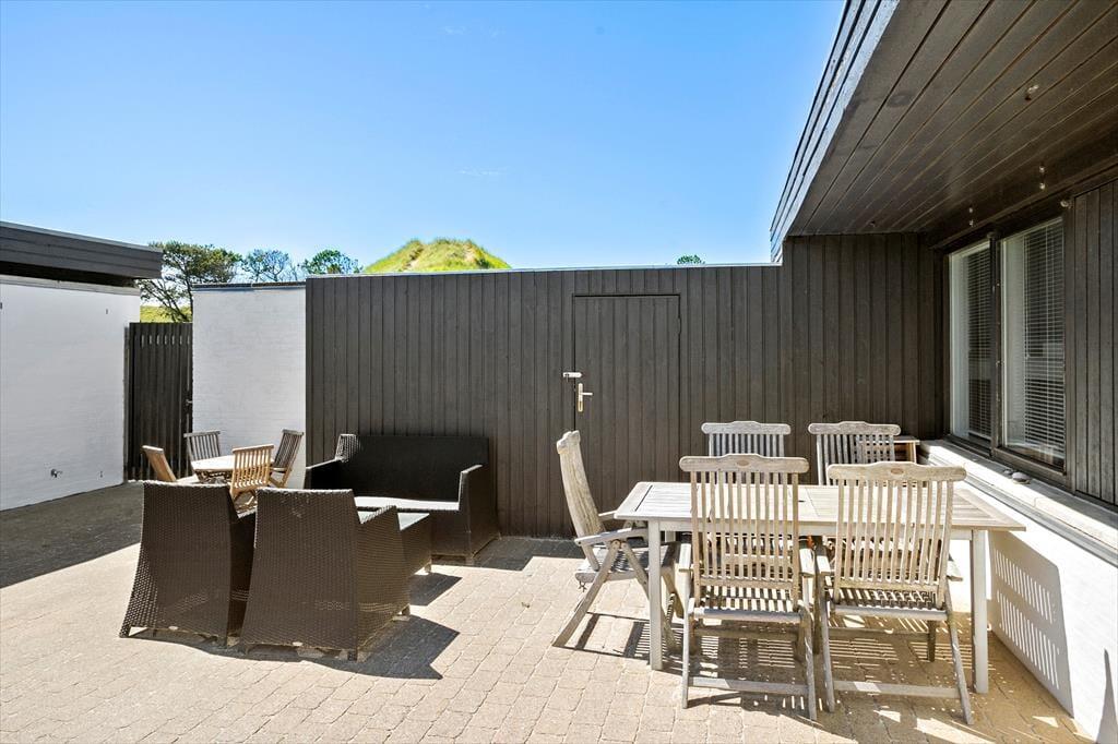 Sommerhuset er omgivet af en skøn, lukket gårdhave, hvor I kan nyde livet i fuldkommen ro og uforstyrrethed. Her kan I starte dagen med en kop kaffe i morgensolen, lytte til fuglesang og mærke roen sænke sig. Den lukkede gårdhave er perfekt til solbadning, hyggelige grillaftener og stunder med en god bog. På den store terrasse kan I nyde udsigten til den smukke natur og fornemme havets nærhed. Når I har brug for at køle af, ligger Vesterhavet kun en kort gåtur væk, hvor I kan tage en forfriskende dukkert eller gå en tur langs stranden og nyde synet af bølgerne, der slår mod kysten.