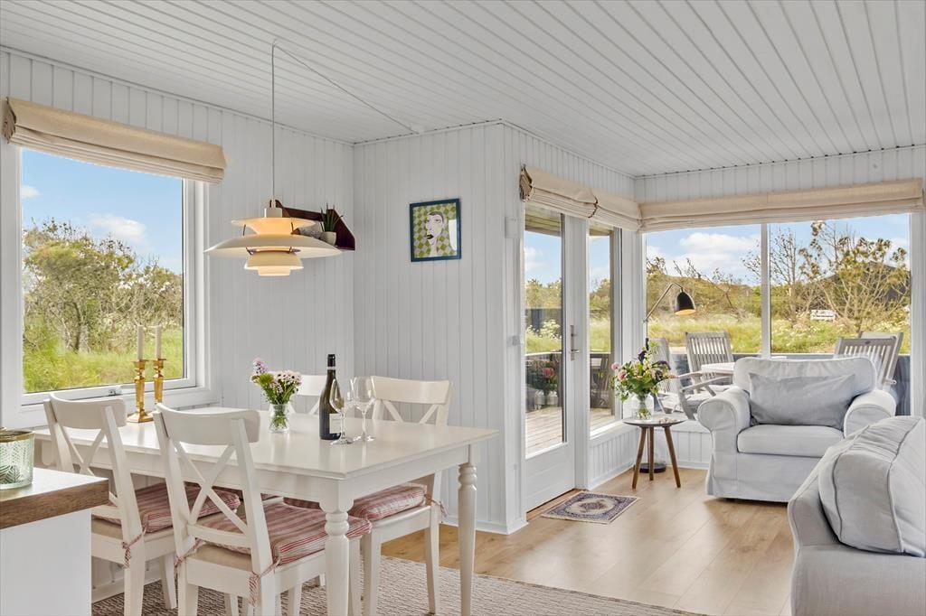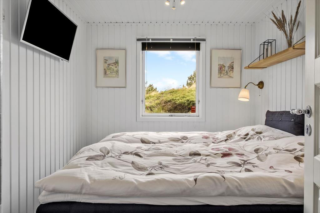 Et virkeligt hyggeligt hus, som stadig efter en gennemgribende renovering i 2017, oser af den helt rigtige sommerhusstemning: lyse gulve, hvide panelvægge, vinduer med udsigt til klitlandskabet og en flot brændeovn til at skabe den hyggelige atmosfære. Huset består af et åbent køkken-opholdsrum, tre værelser med hhv. to dobbeltsenge og en sovesofa og endeligt et badeværelse med toilet og bruser som er renoveret i 2020. Møblerne er holdt i lyse og nedtonede farver og tekstiler, brugskunst og andre pynteting er afstemt hertil. Huset er udstyret med opvaskemaskine, varmepumpe, kabel-tv og trådløst internet, så medbring gerne tablets eller pc hjemmefra, så er det nemt at søge informationer og oplysninger om alle de muligheder, som området byder på. Ydermere byder huset på 2 TV apparater. Et i stuen og et på det ene værelse. Et kvalitetshus med garanti for en vellykket ferie i det nordjyske.