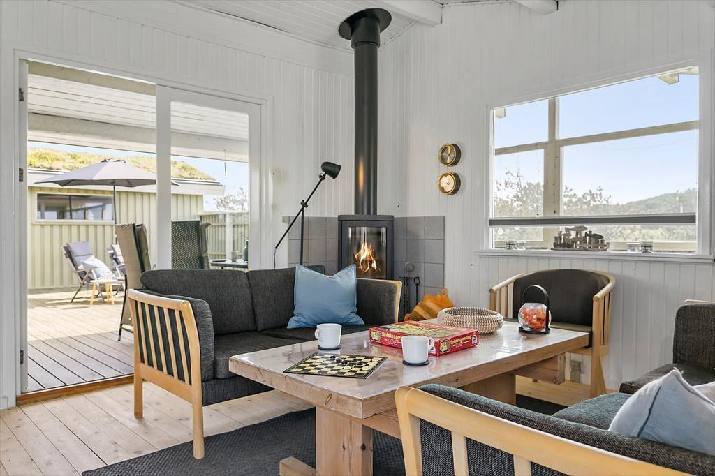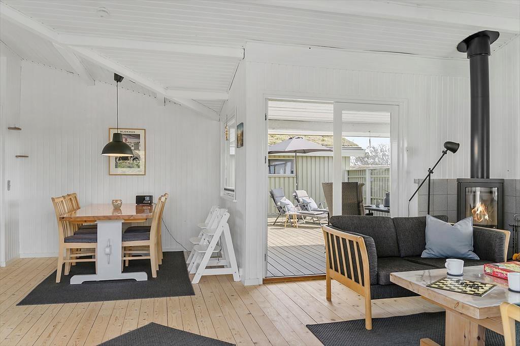 Det klassiske træsommerhus på 74 m2 er senest blevet renoveret i 2022, så det fremstår pænt og velholdt. I har blandt andet et godt og moderne køkken at kokkerere i med opvaskemaskine og ovn i ståhøjde, og det er smart integreret med stuen, så I kan hyggesnakke eller følge med i børnenes leg, selvom der skal røres i gryderne. I stuen står en dejlig brændeovn, og der er også varmepumpe med køl, radio med bluetooth og fladskærms-tv med Chromecast, der gør ferielivet ekstra rart. Sommerhusets badeværelse er lyst og velindrettet, og det samme er de tre soveværelser, hvoraf et er udstyret med dobbeltseng og de to andre med komfortable sovesofaer.