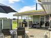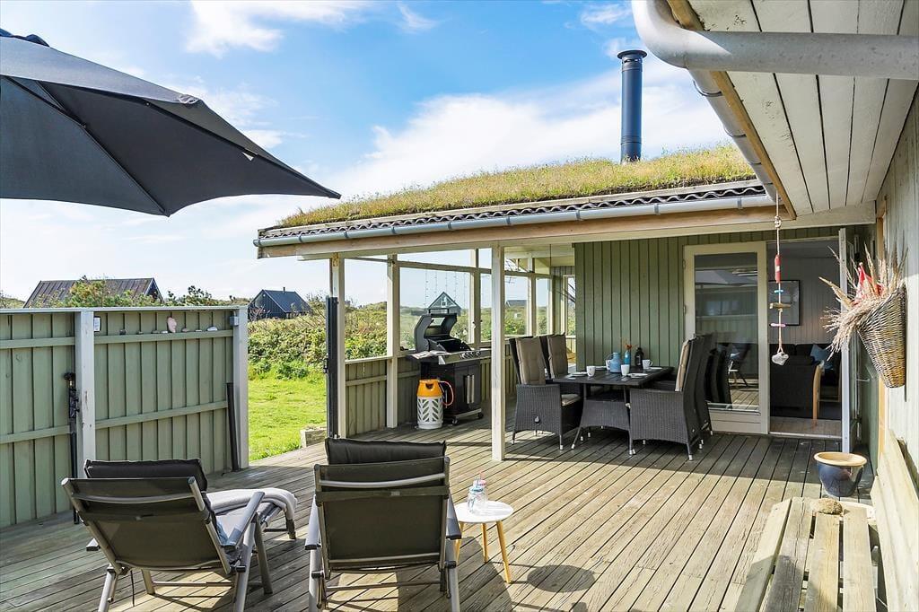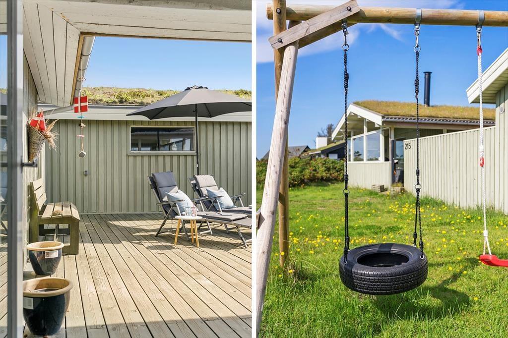 Sommerhusets syd- og østvendte terrassemiljø kan lukkes helt af, og lige meget om I foretrækker at sidde i solen eller på den overdækkede og afskærmede afdeling, er det et skønt sted at nyde livet. Den vestvendte terrasse gør det bestemt også godt, og mon ikke børnene vil sætte pris på gyngestativet og sandkasse, der ligger på den 1256 m2 store naturgrund.