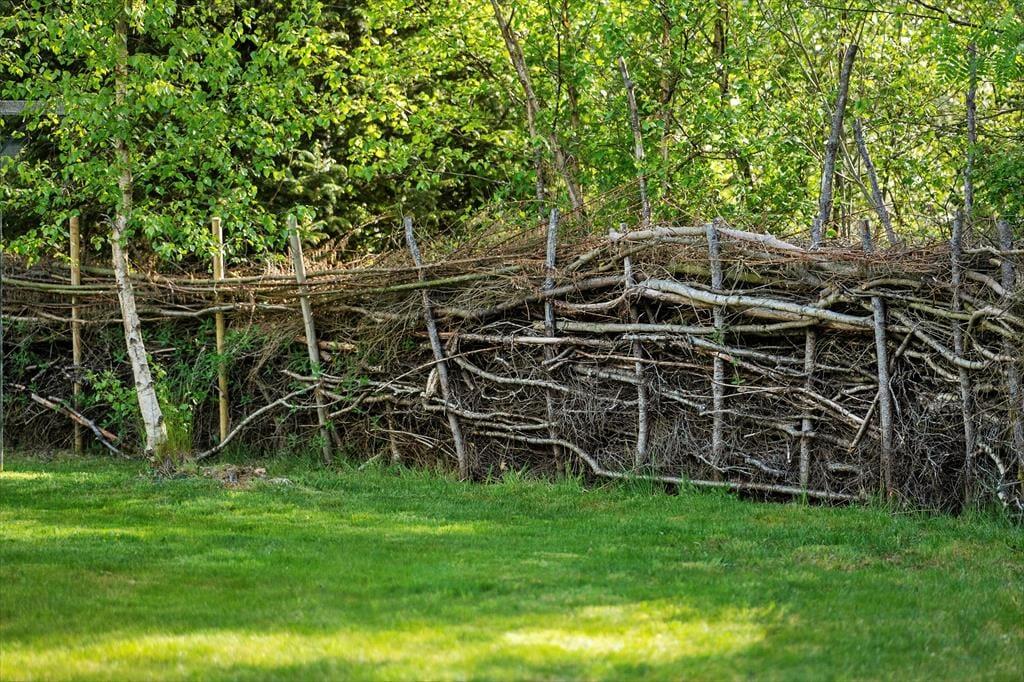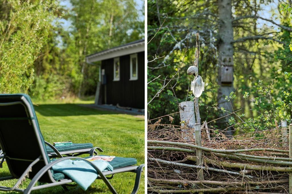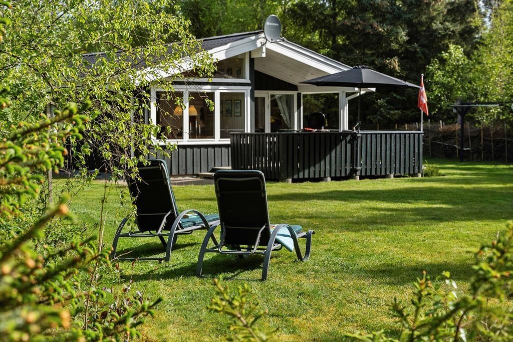 Nærmest stuen er terrassen overdækket, og ellers er det udendørs opholdsareal åbent, så det er muligt at finde både solrige og skyggefulde siddepladser. Græsplænen indbyder til havespil, og der er også dart, hvis I får lyst til at skyde til måls. Og uanset om det er tid til leg eller en tilbagelænet pause i havestolene, kan I nyde at bo dejligt ugeneret mellem naturgrundens mange træer.