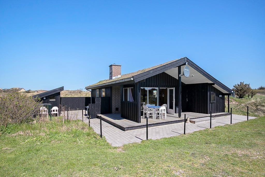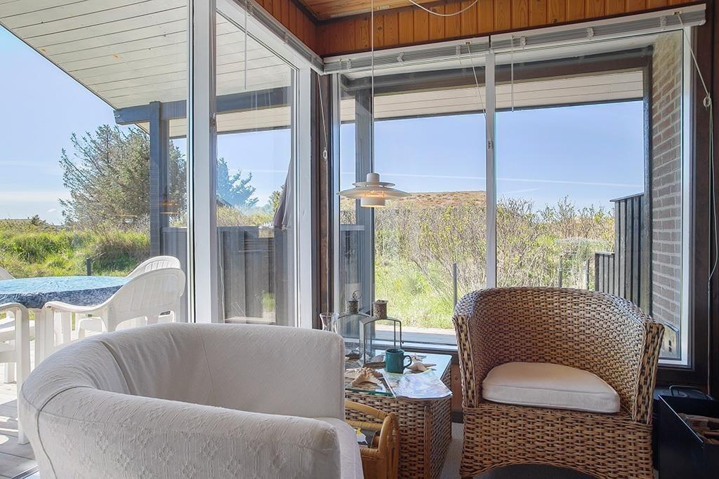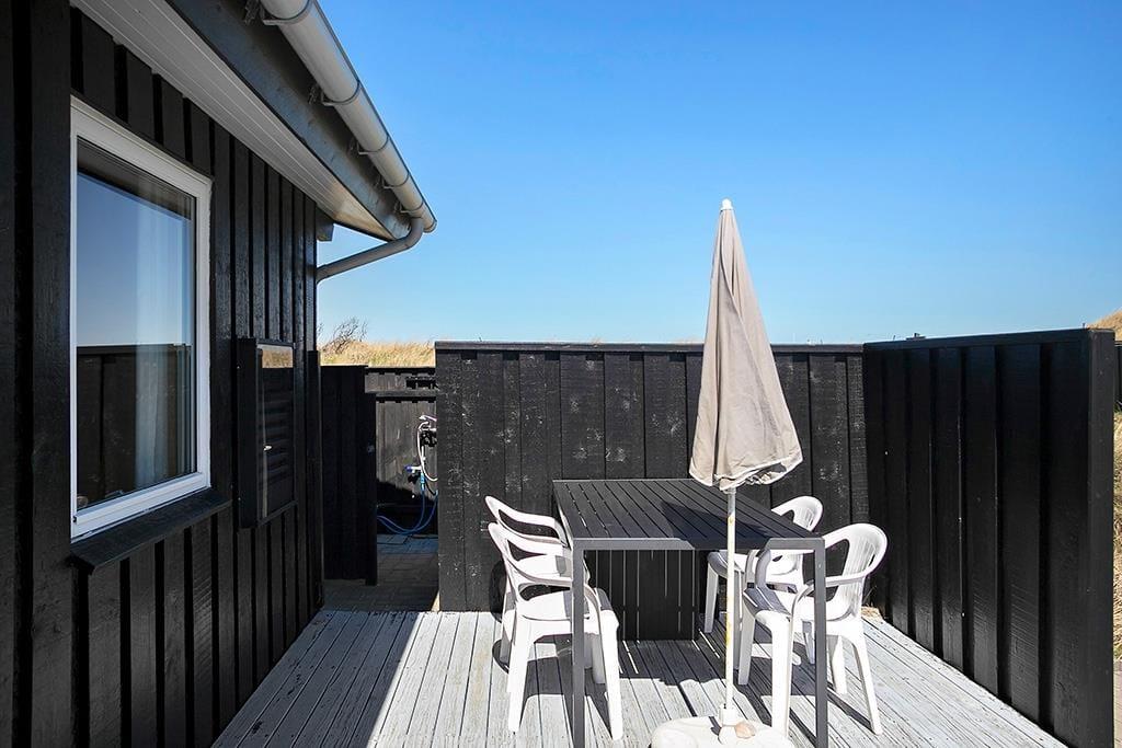 Huset er beliggende på dejlig naturgrund. Her er både en lille plæne hvor der er plads til leg og boldspil. Små klitter med marehalm og buske gør samtidig at man føler sig i et med den fantastiske natur der er kendetegnende for området ved Rødhus. På husets to gode terrasser hvorfra der er udgang fra henholdsvis stuen og køkkenet, kan man sidde og nyde det danske sommervejr og de lange lyse aftener.