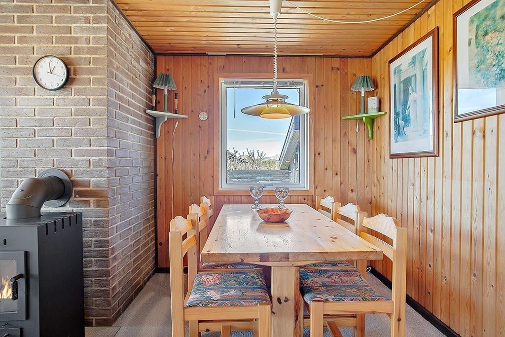 Huset er et godt og velholdt standardhus med imødekommende og venlig indretning. Indrettet med 3 soverum, de to med køjer og det ene med dobbeltseng. Køkkenet er i åben forbindelse med stuen, og desuden lille fordelingsgang hvor der er adgang til 2 af husets soverum samt badeværelse med bruser. I stuen er der brændeovn og hyggelige møbler. De ideelle rammer for en ferie hvor samvær, hygge og god tid er i højsædet.