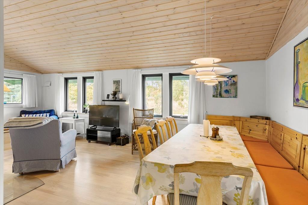 Ferieliv og udendørs hyggestunder hænger unægtelig sammen, og på husets terrasser kan I komme helt ned i tempo og bare nyde de fredfyldte omgivelser på den ugenerede grund. Her står den på frisk luft og duft af lyng og nåletræer til tonerne af fuglekvidder – meget bedre bliver det ikke. Da der er terrasser på begge sider af huset, kan I altid finde en plet med sol eller skygge efter behov, og der er også en del af terrassen, som er overdækket.