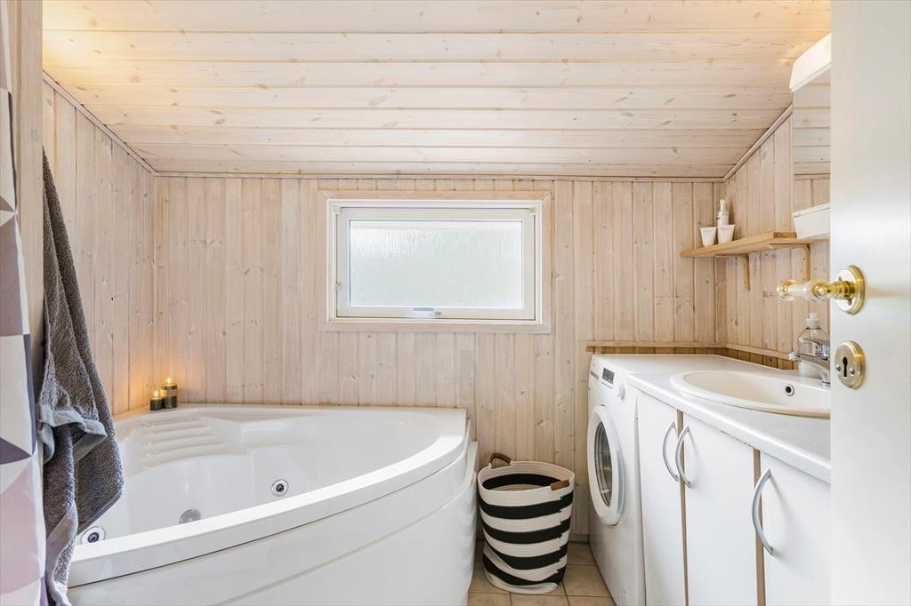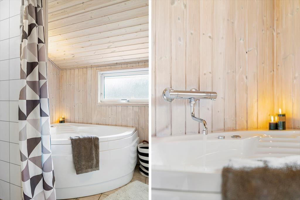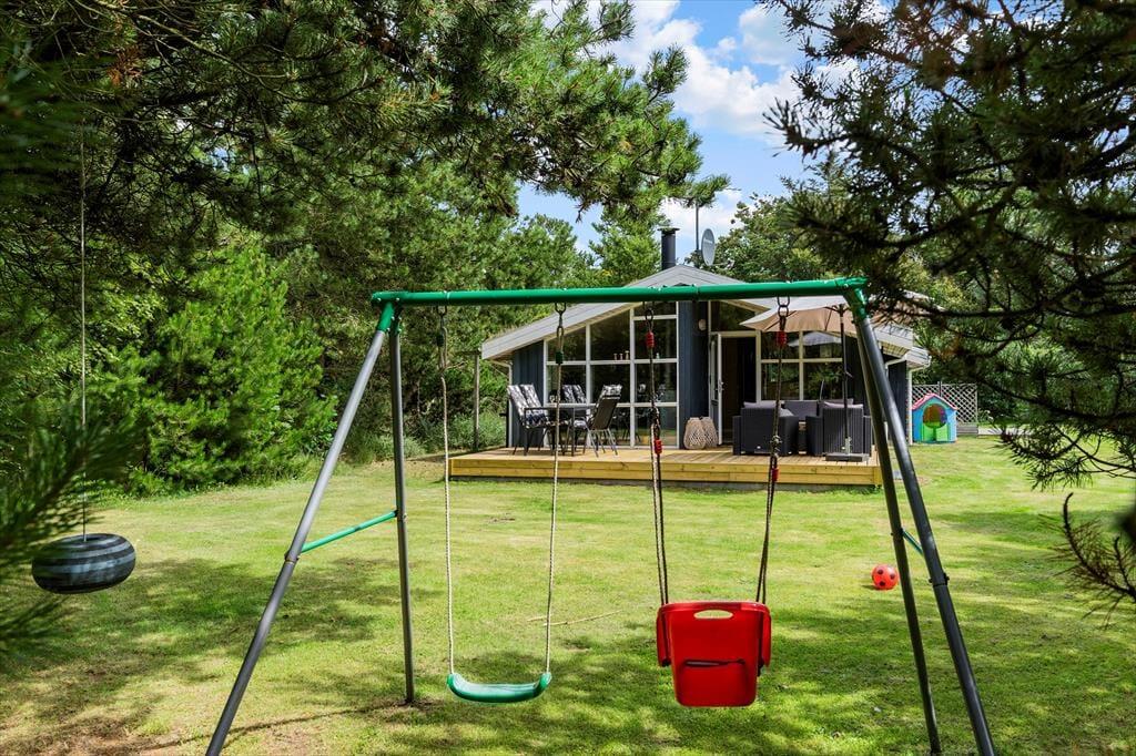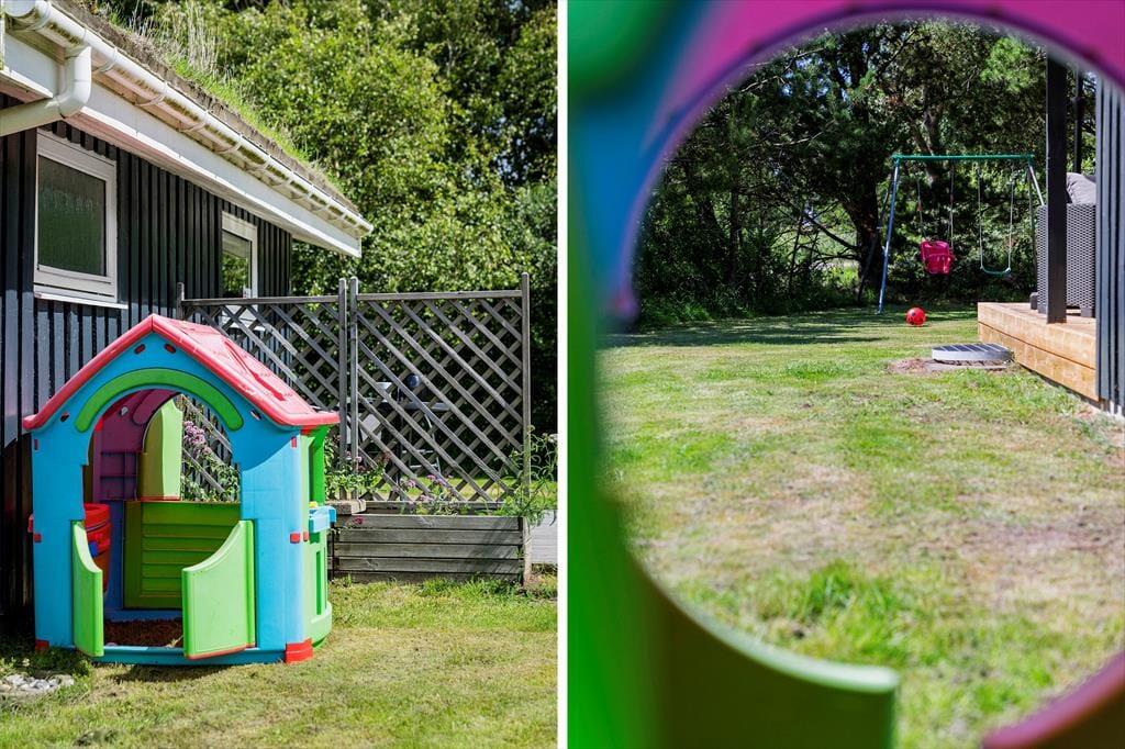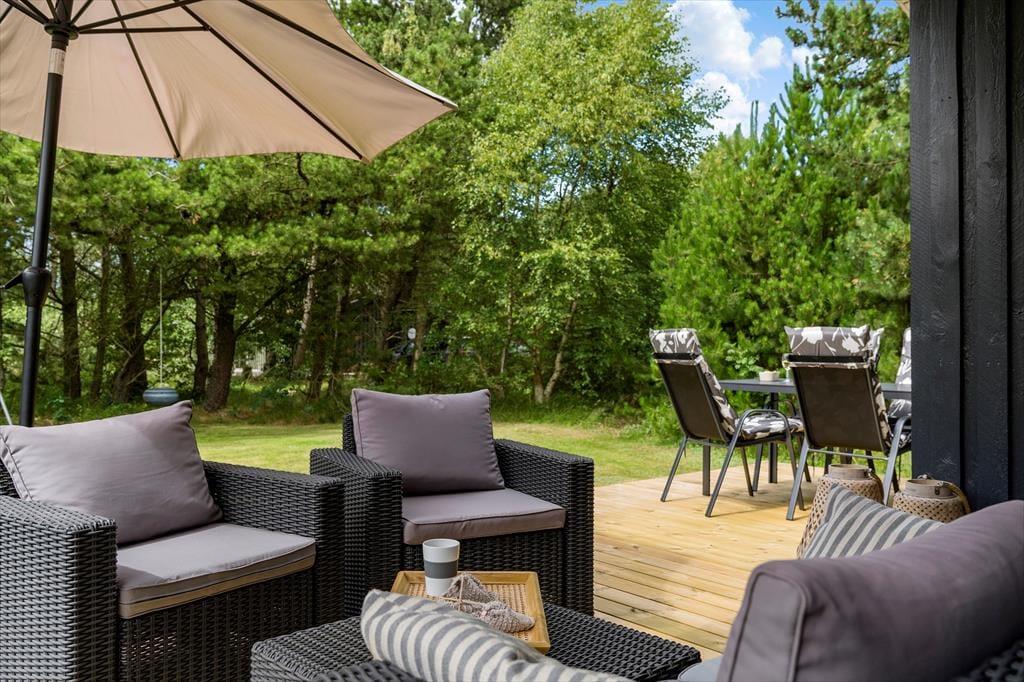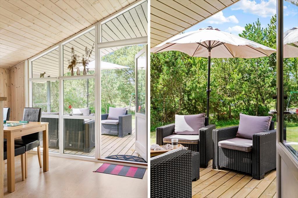 Ikke mange sommerhuse har så skønne udendørsfaciliteter som dette sommerhus:, her kan livet nydes i fulde drag. Trænger man ind i mellem til at slappe af, er der gode muligheder for dette på de to terrasser, hvoraf den ene er delvist overdækket og aflukket.