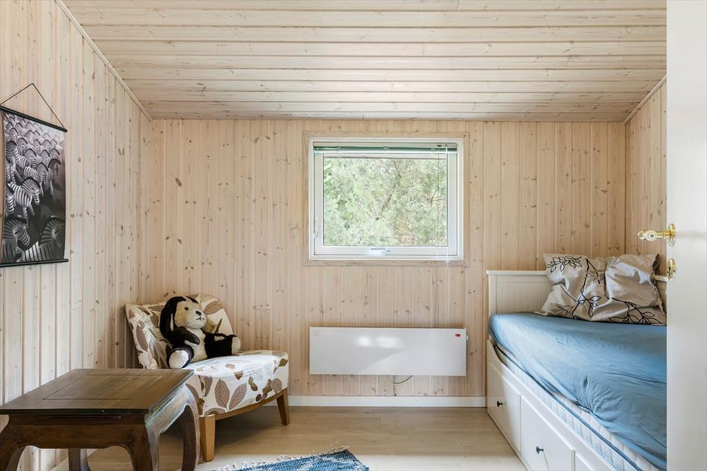 Sommerhuset, som er opført i træ, emmer af ægte sommerhusstemning. Det er tydeligt at ejerne passer godt på stedet og sætter en ære i at gøre det brugbart og hyggeligt. Her er plads til seks overnattende gæster, og deres samlingspunkt bliver hurtigt det åbne opholdsrum med køkken, spiseplads og stue. I stuen finder man en stor og flot brændeovn, som spreder varme på kølige morgener og aftener og som skaber den helt rigtige stemning for en afslappende ferie. Sommerhuset egner sig fint til at have børn med, barneseng og stol kan tages i brug, og de lidt større børn vil sætte pris på det gratis og trådløse internet. En god kombination af funktionalitet, kvalitet og hygge!