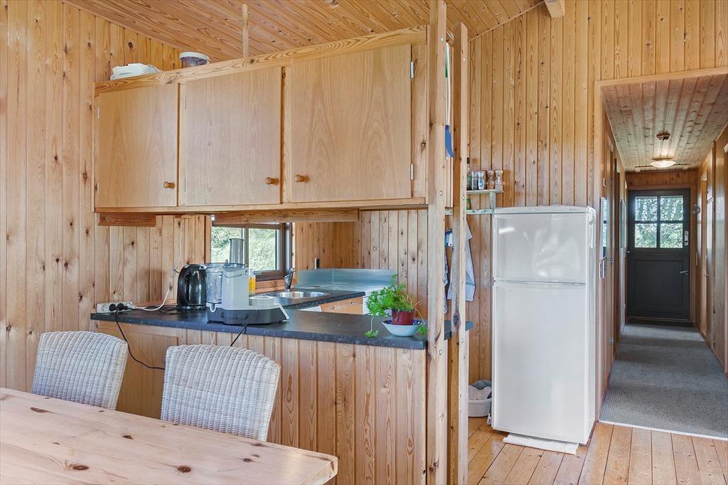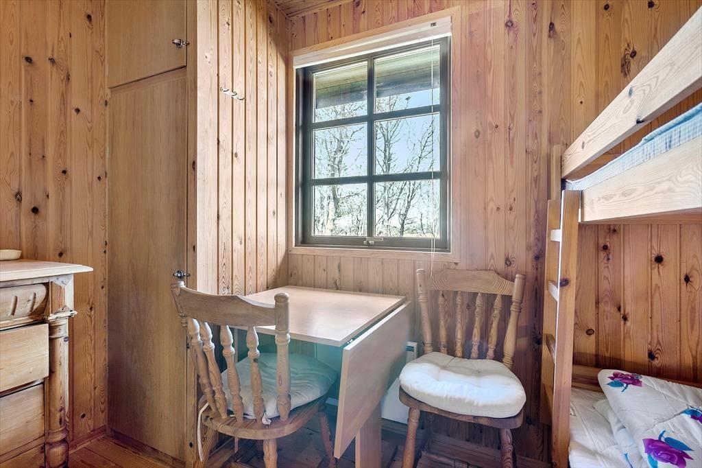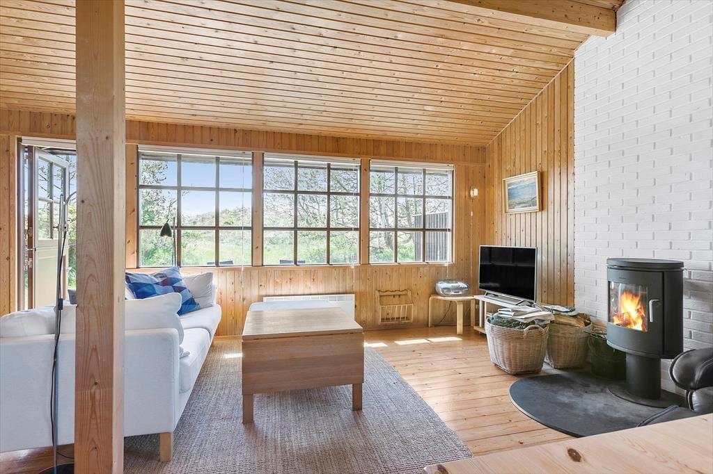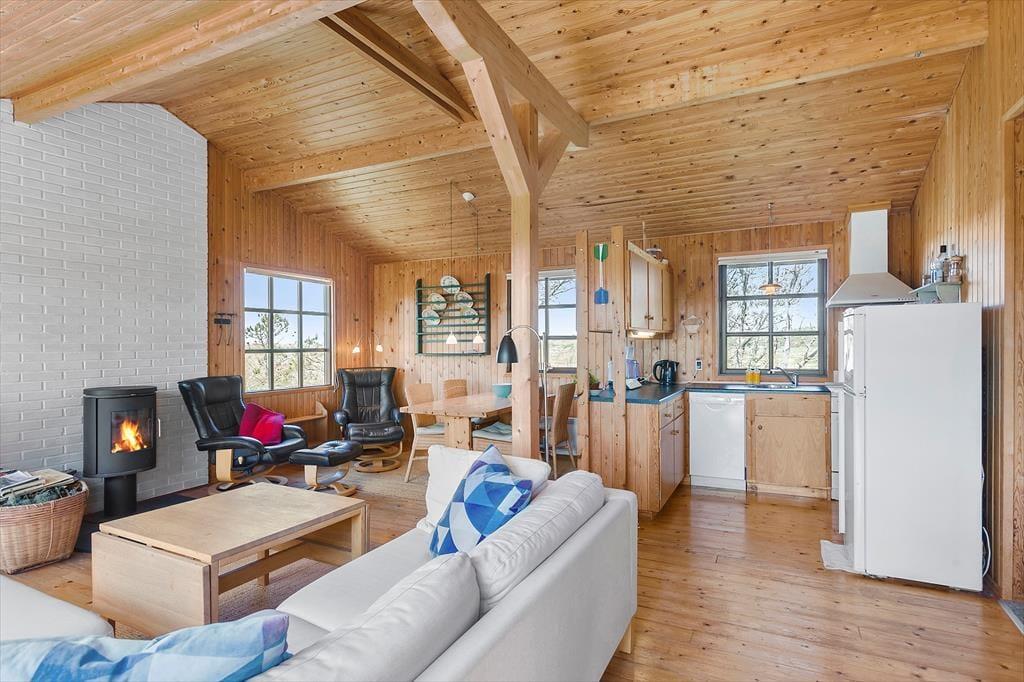 Kort fortalt er huset et hus fra 1979, der har en velfungerende planløsning til fire personer. Tre soveværelser, hvor det ene er indrettet med dobbeltseng, det andet med en trekvartseng dobbeltseng og et tredje med køjeseng, og derudover finder I et brusebadeværelse og en stue med integreret køkken inden døre. I har som nævnt god afstand til naboerne – til gengæld er der stor sandsynlighed for, at I ser rådyr, harer eller andet vildt trippe forbi udenfor, når I slapper af inden døre. Dyrelivet er nemlig rigt i området, og I har fri udsigt til den fredfyldte natur gennem sommerhusets sprossevinduer. Huset passer perfekt ind i naturidyllen med sit klassiske indre med loft til kip og umalede trælister på væggene. Og når der er ild i brændeovnen – eller når terrassedøren står på klem, alt efter årstiden – er sommerhuscharmen og den skønne atmosfære bare helt i top.