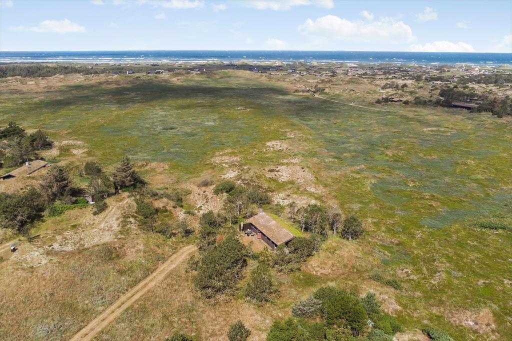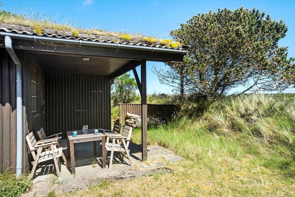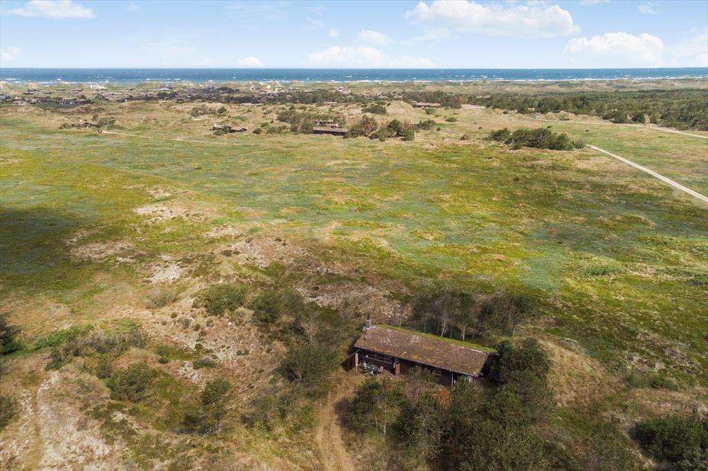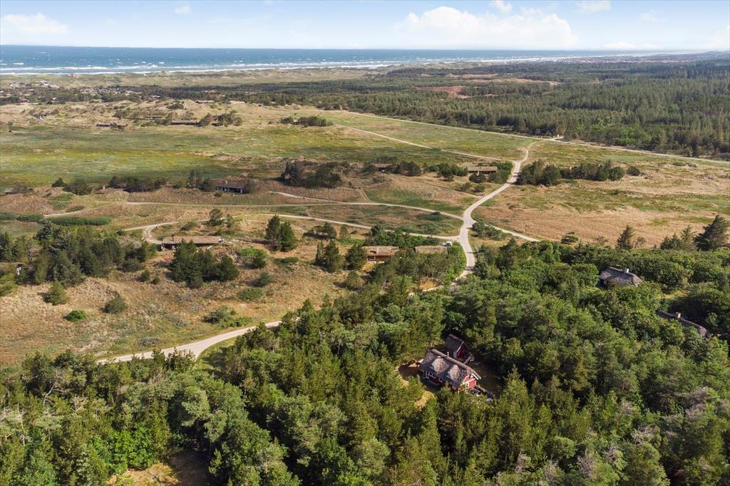 I husets sydøstlige ende ligger en overdækket terrasse, og hvis I hellere vil sidde under åben himmel, kan I slå jer ned syd for huset. Den ugenerede grund måler hele 2500 m2, og her får marehalm, krogede fyrretræer og anden naturlig bevoksning lov til at brede sig frit. Nord for grunden åbner klitheden landskabet op, og som en skøn detalje er alle nabohuse meget diskret placeret, så det er virkelig naturen, der råder her på egnen.