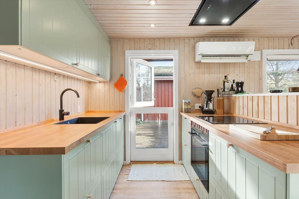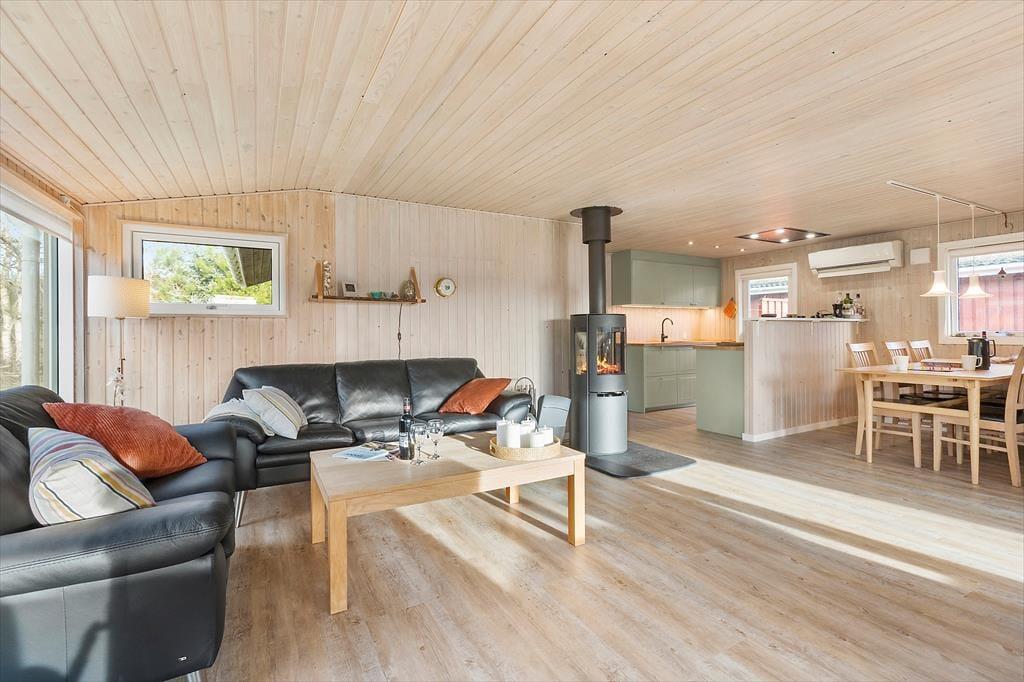 Her på adressen er der sommerhusstemning for alle pengene – og det kan allerede mærkes, når I ser huset udefra, for det har et charmerende ydre med rød træfacade og levende tag. Inden døre er rummene lyse og imødekommende, så I hurtigt kan føle jer godt tilpas og mærke feriefreden indfinde sig. Indretningen er enkel og velfungerende: På de tre soveværelser er der plads til syv overnattende gæster, og badeværelset såvel som bryggerset og køkkenet har alle de funktionelle detaljer, der skal til, for at I kan bade, vaske tøj og lave mad. Køkkenet ligger i åben forbindelse med stuen, så selvom I rører i gryderne, går I ikke glip af familienærværet, men kan frit tage del i hyggesnakken.