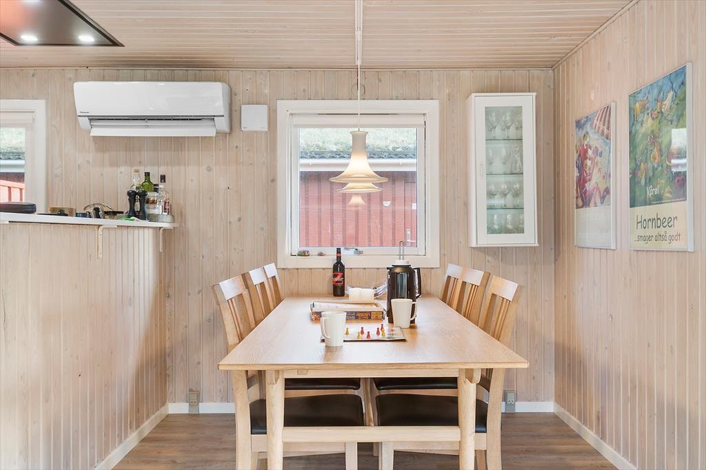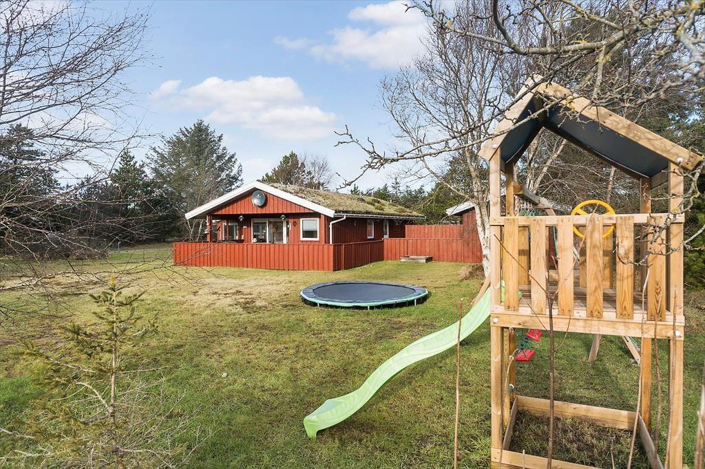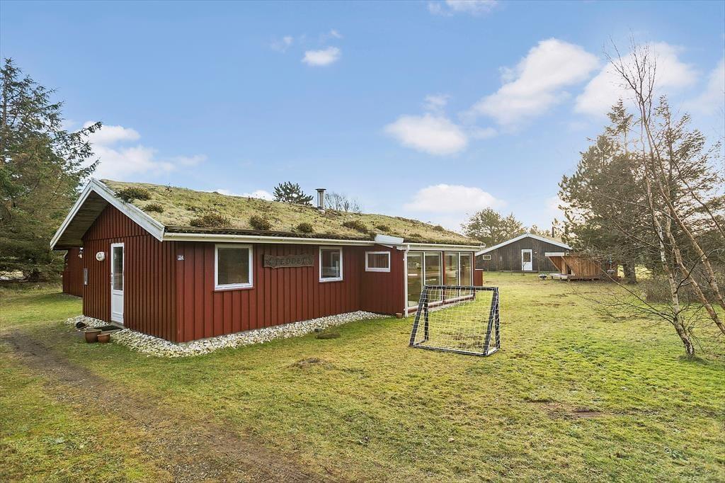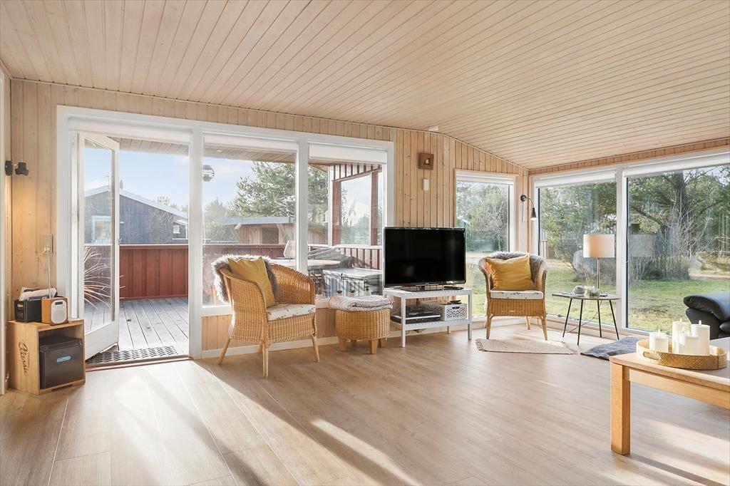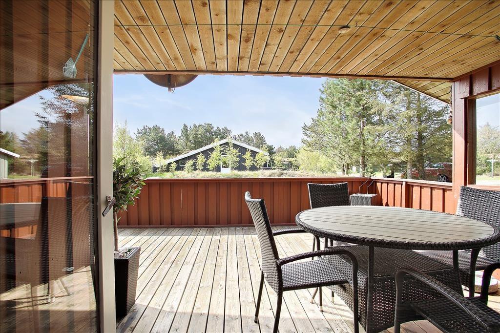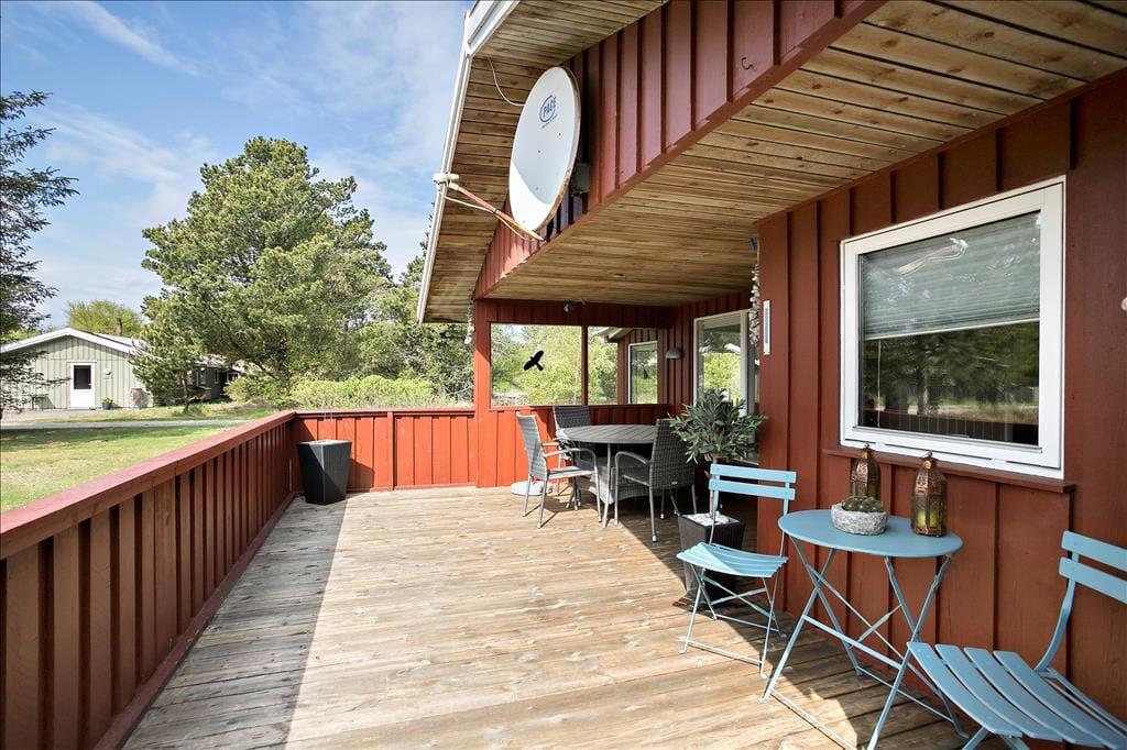 Sommerhuset ligger næsten for enden af en lille vej, så I har fred og ro omkring jer, når I slapper af på terrassen eller leger på græsplænen. Den store terrasse er afskærmet af hegn, og der er også et overdækket område, hvor I kan hygge jer med lækker mad og en god flaske vin, mens I nyder de lange, lyse sommeraftner.