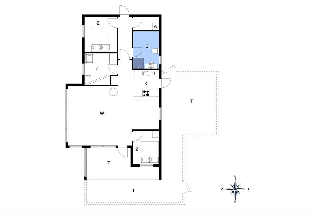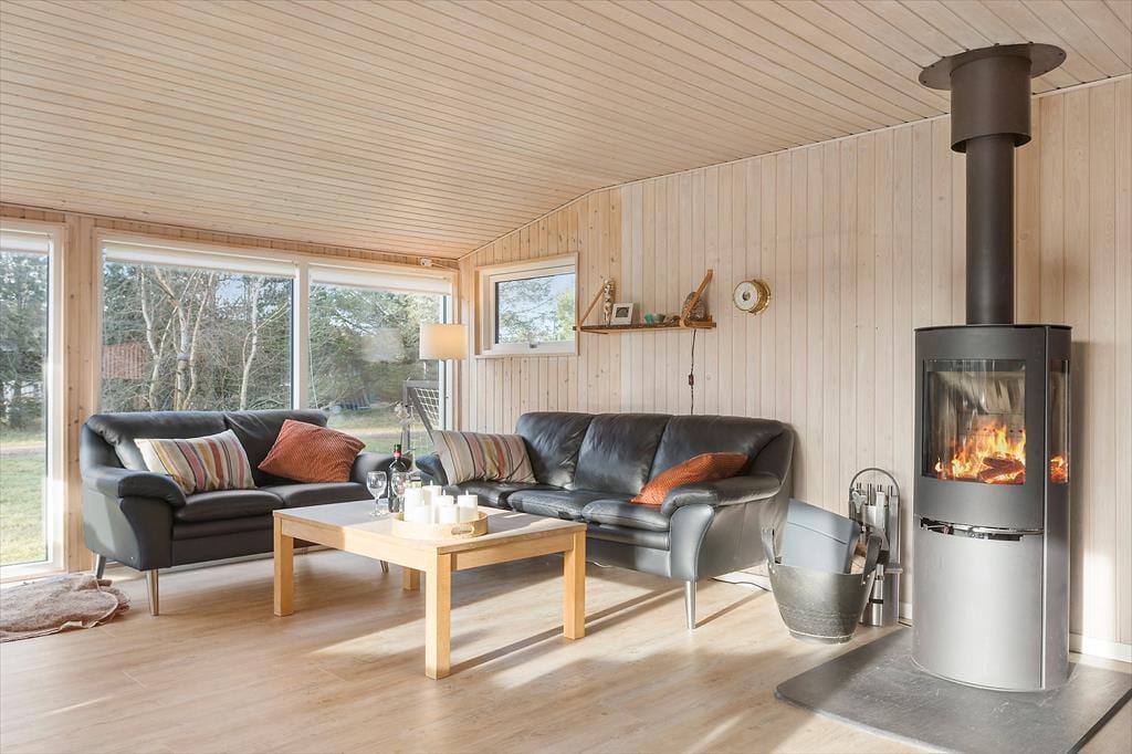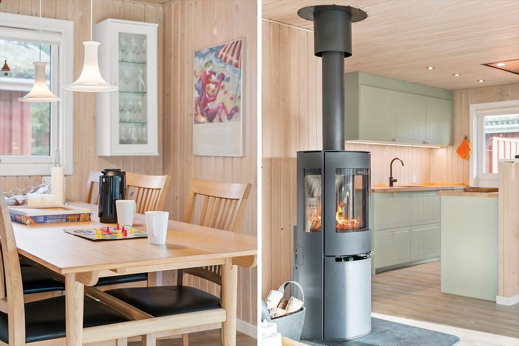 Dette velholdte sommerhus i Rødhus er udstyret med brændeovn i den hyggelige stue, så I kan have det varmt og godt inden døre selv på en kold dag. Er vejret solrigt og sommerligt, kan driverlivet i stedet flyttes ud på terrasserne, der smyger sig om huset på den grønne grund.