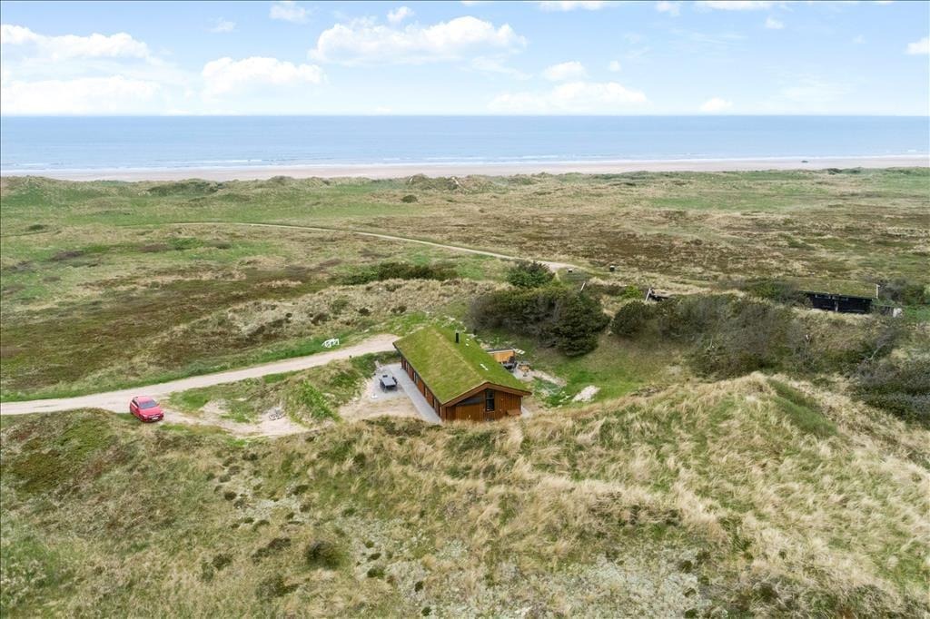 På den 2.883 m2 store naturgrund omkranses sommerhuset af bløde klitter, så det ligger nærmest i en gryde. Det betyder, at I bor dejligt afskærmet og ugeneret, og der er god mulighed for at finde en opholdsplads med læ, hvis I trænger til en eftermiddagslur i solen. Kommer I hjem fra et dyp i Vesterhavet, kan I skylle sand og saltvand af under den udendørs bruser, før I igen er klar til driverlivet på terrassen.