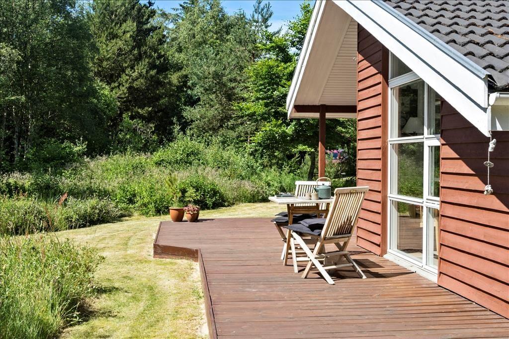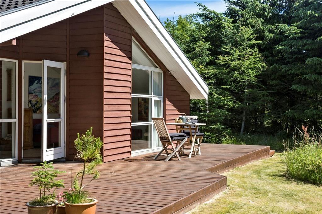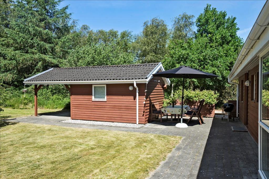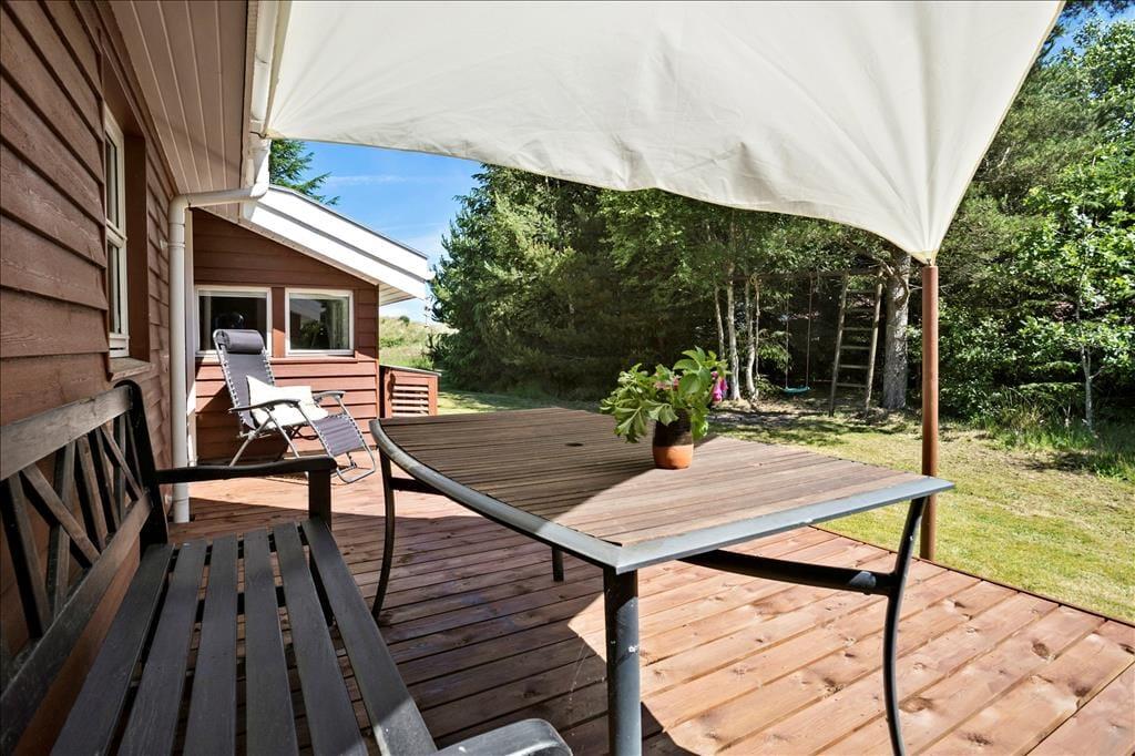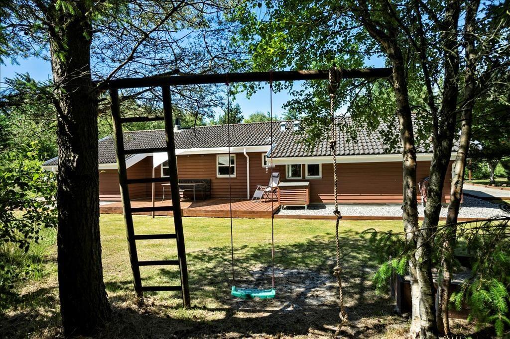 Legebørn og livsnydere får det skønt ude i det fri på den 2.359 m2 store grund. Her er grønt og frodigt, og der er god plads til at boltre sig på græsplænen og til at sole sig på de dejlige terrasseområder, der er placeret rundt omkring sommerhuset. For at gøre udelivet endnu mere komplet, er der petanquebane, dart, hængekøje, gynge og sågar en udendørs bruser, så morgenbadet kan foregå til lyden af fuglesang fra trætoppene.