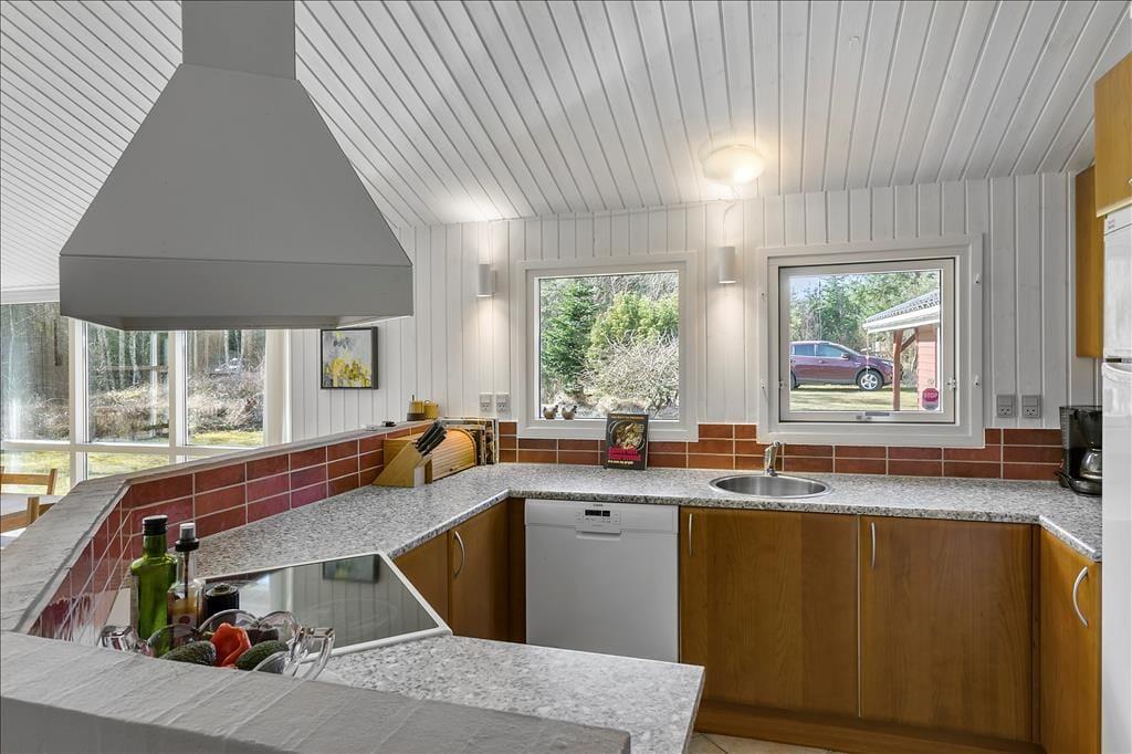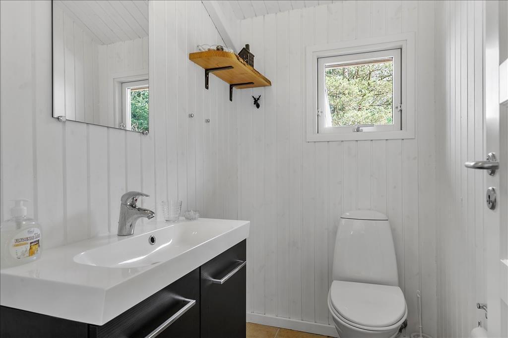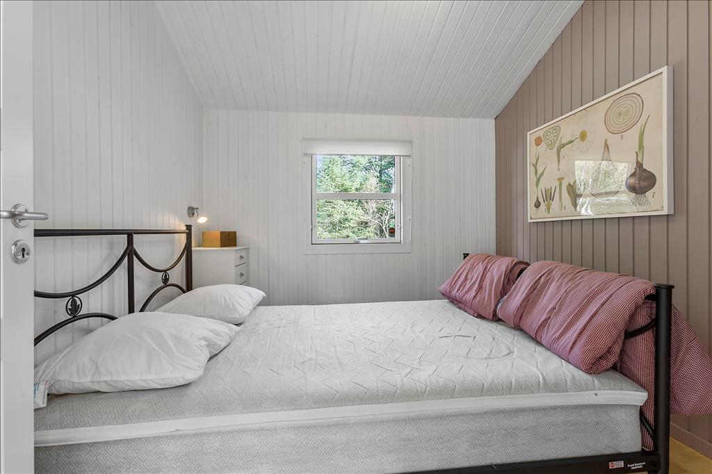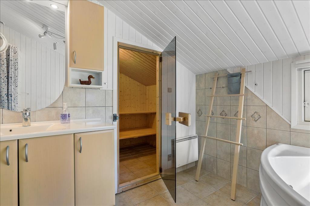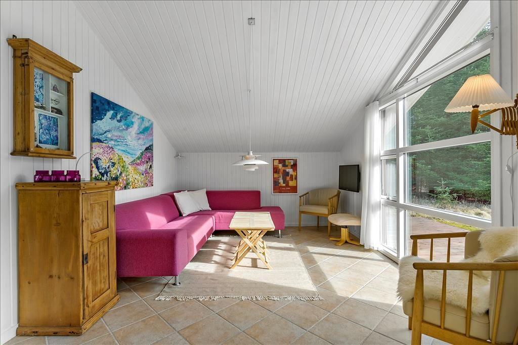 Sommerhuset er opført i 2002 og er senest blevet renoveret i 2020, så det fremstår pænt og velholdt. Inden døre kan I brede jer på 108 m2, og planløsningen er fornuftigt udformet, så otte personer kan nemt og bekvemt holde ferie sammen. Alle fire værelser er udstyret med gode dobbeltsenge, og så er der både et stort badeværelse og et mindre gæstetoilet i huset. Når I virkelig skal koble af, kan I gøre klar til en rigtig wellness-stund med spabad og sauna på badeværelset – eller også kan I tænde op i brændeovnen, finde en god film på fladskærmen og slænge jer i sofaen. Sofakrogen ligger som del af det store opholdsrum, der også er indrettet med spisebord og et veludstyret åbent køkken. Husets hems er for øvrigt også indrettet som en dejlig hyggekrog, for her er der nemlig madrasser og tv med Playstation.