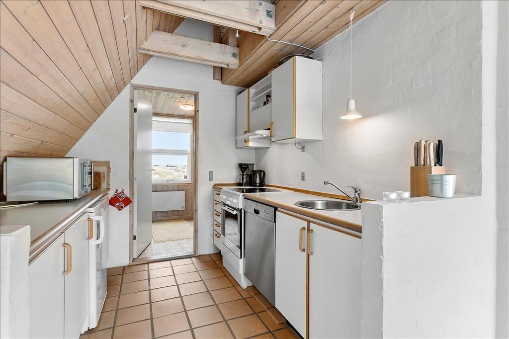 Narhvalen er en lille vej, der ender blindt, og derfor er der stille og roligt her på ferieadressen. Med andre ord er det helt oplagt at komme her for at koble af, samle ny energi og få fyldt hovedet med lys, luft og lindrende indtryk fra Nordjyllands rå og uspolerede vestkyst. Rødhus Strand ligger omtrent 500 meter væk, så det er næsten obligatorisk at gå ned til Vesterhavet dagligt – uanset om I vil bade, lege i sandet eller bare skue ud over det åbne vand. Lokalområdet lægger også op til massevis af udflugter til fods eller på cykel, og får I lyst til cafébesøg eller en shoppetur, kan I få jeres lyst styret i badebyen Blokhus, der ligger lidt længere oppe ad kysten.