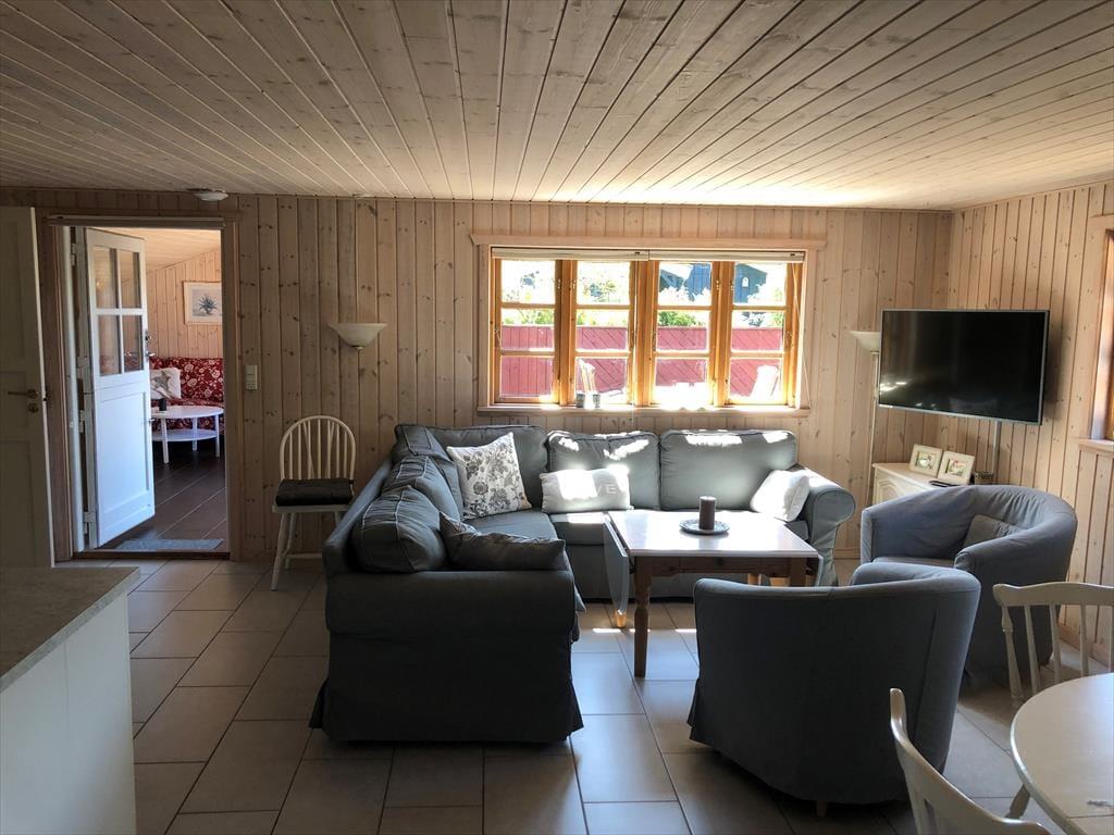 Udelivet kan oplagt foregå i den afskærmede og delvist overdækkede solgård, der omkranses af hegn til alle sider. Det er en skøn og ugeneret oase, hvor hele dagen nemt kan gå med at dase i liggestolene med en god bog. Kan I ikke få nok af det gode vejr, kan I blive ude for at grille og nyde den flotte aftenhimmel og den fredfyldte atmosfære.