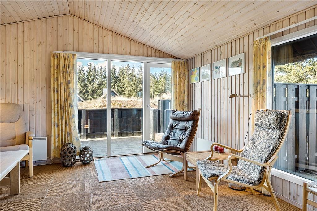 Grunden smelter sammen med det omkringliggende landskab, så når I står ved huset, har I den fri natur lige foran jeres fødder. Det føles eksklusivt at bo i så øde og uspolerede omgivelser, og feriefreden skulle meget gerne indfinde sig straks. Giver al den friske luft og den rolige atmosfære jer lyst til en middagslur, kan den passende foregå ude i det fri på den sydvendte terrasse, der er udstyret med havemøbler, grill og liggestole.