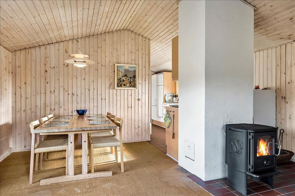 Der er virkelig naturidyl for alle pengene her på adressen – og det stråtækte træsommerhus passer heldigvis perfekt ind i omgivelserne. Inden døre er huset også lige, som det skal være med trælister på væggene, loft til kip og brændeovn i stuen. Køkken og stue ligger i åben forbindelse, så madlavning, måltider og sofahygge kommer alt sammen til at foregå i det hyggelige opholdsrum. Derudover har I tre soveværelser at gøre godt med og et badeværelse med bruser og gulvvarme.