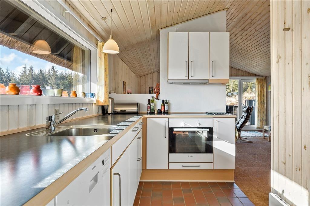 Sommerhuset ligger i et lille afsides område i Ferborg-udstykningen. Vejen ender blindt, så den eneste forbipasserende trafik er til de få nabohuse. Og til gengæld er der stier, som I kan følge, hvis I vil af sted til fods i de flotte og fredsommelige omgivelser. Turen til stranden kan klares til fods på 10-15 minutter, og selvom Rødhus Strand er mindst lige så dejlig som den nærliggende Blokhus Strand, er den mindre besøgt. Samtidig bor I bare få kilometer fra både Hune og Blokhus, hvis I får lyst til et skud feriebystemning.