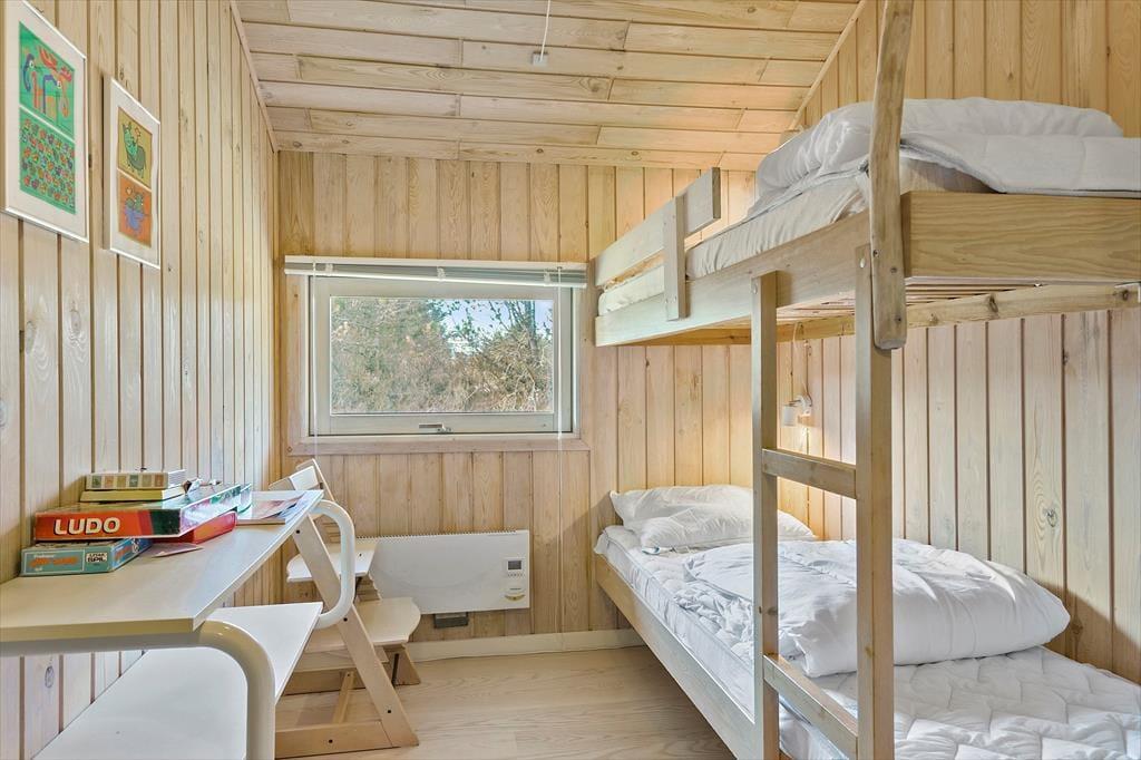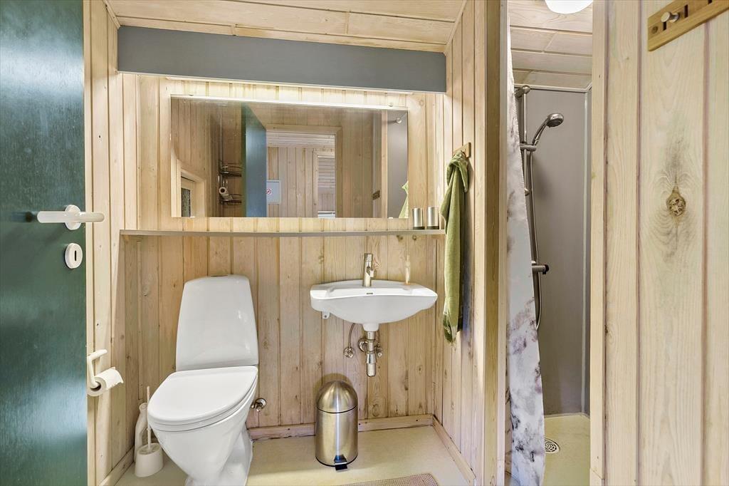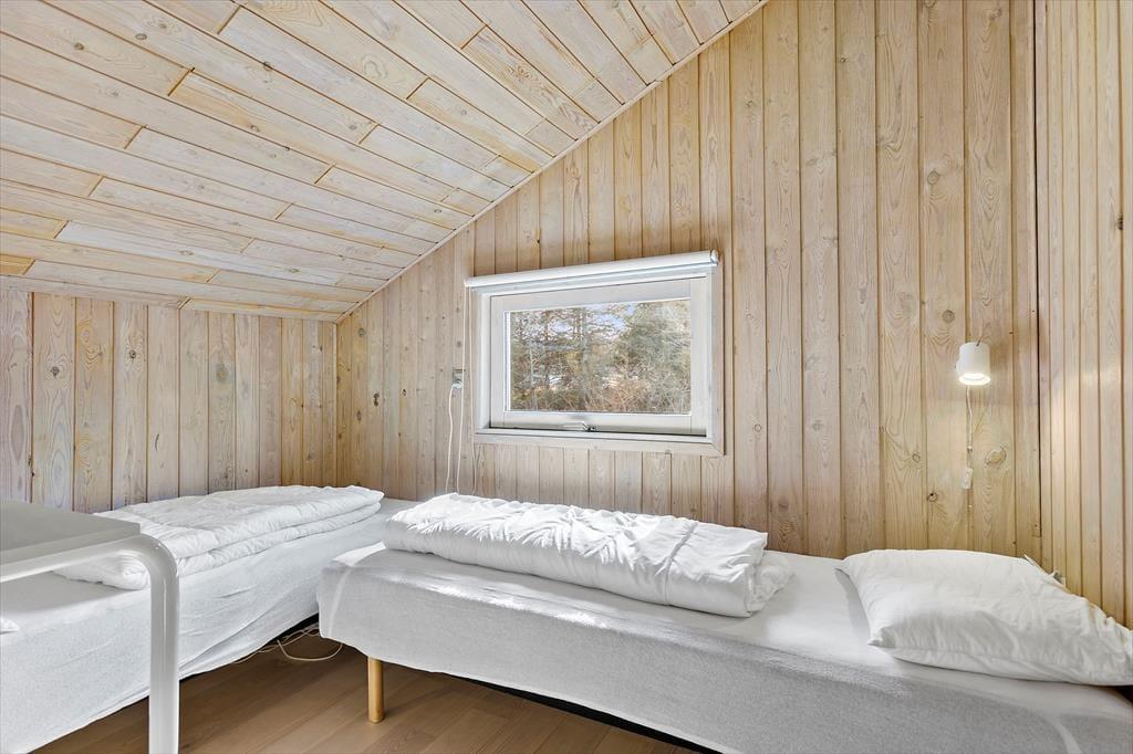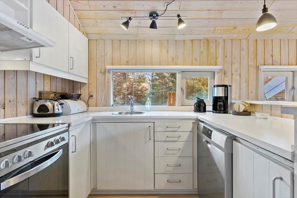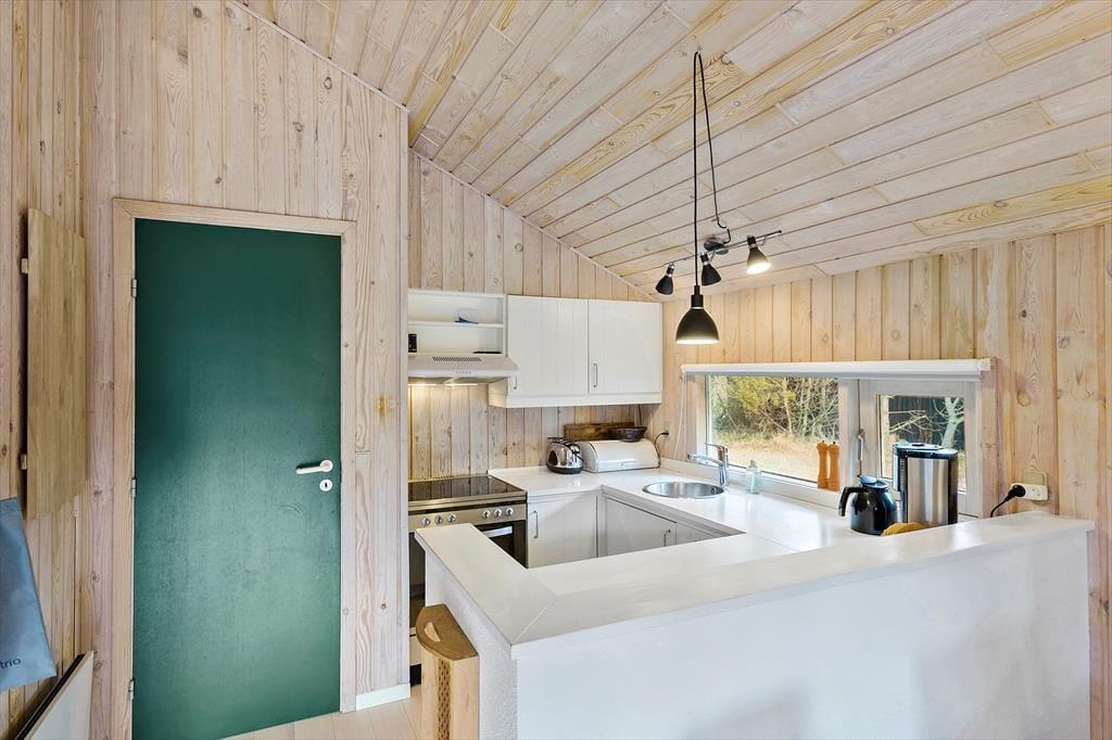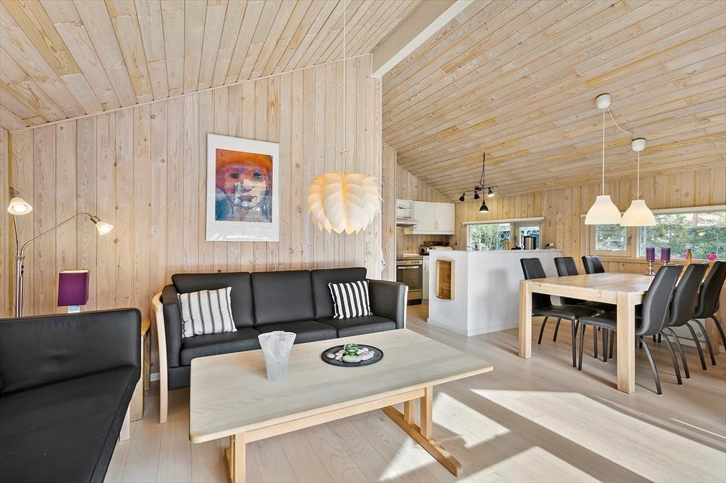 Dette traditionelle sommerhus er velholdt og nydeligt indrettet med lyse vægge, højt til loftet og pæne møbler i alle rum. Husets centrale rum er det sammenhængende og åbne køkken-alrum bestående af spisestue og stue med et behageligt sofaarrangement og dejlig udsigt til naturgrunden udenfor. På de tre værelser er der i alt plads til fem personer, sommerhuset er dermed lige ideelt for en familie som for to par. På badeværelset er brusekabine, og fra bryggerset har man adgang til en sauna, hvor man kan få varmen igen efter en god lang gåtur ved vandet eller i skoven. Alt i alt gode rammer og fine faciliteter for enhver ferieform i det nordjyske.