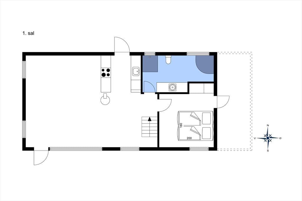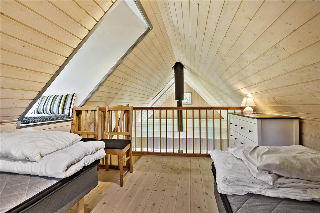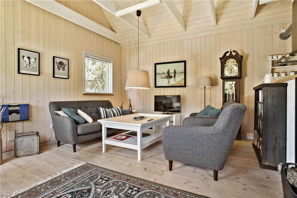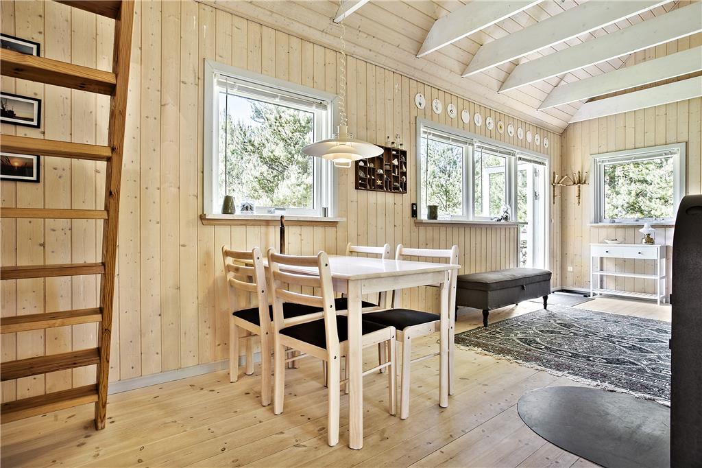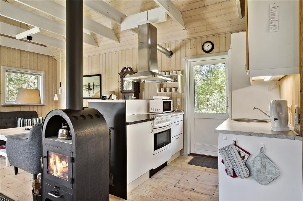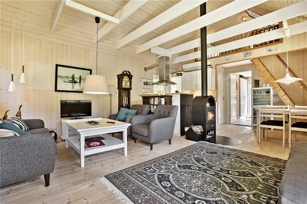 Med dette skønne sommerhus vil I kunne tale længe om den charmerende indretning og den hjertevarme stemning, som skinner igennem. Her er højt til loftet med frithængende bjælker, og ejerens personlige stil og sans for indretning løfter dette hus op i kategorien for topkvalitet. I stueetagen finder I det åbne opholdsrum bestående af køkken, spiseplads og stue med tv-hjørne, et soveværelse med dobbeltseng og et dejligt badeværelse med spabad. Via en flot trætrappe når I 1.salen, som er et værelse med to enkeltsenge. Midt i huset står en brændeovn, som kan sprede hygge og varme på de kølige morgener og aftener, og med det trådløse og gratis internet, kan I altid følge med i, hvad der sker i ude i verden. Sommerhuset egner sig særdeles godt til en parferie, men kan også sagtens bruges af en lille familie; seng og stol til familiens yngste er til rådighed.