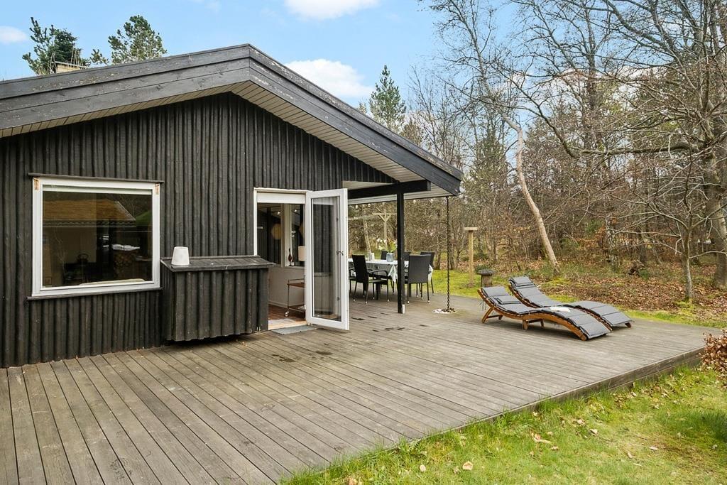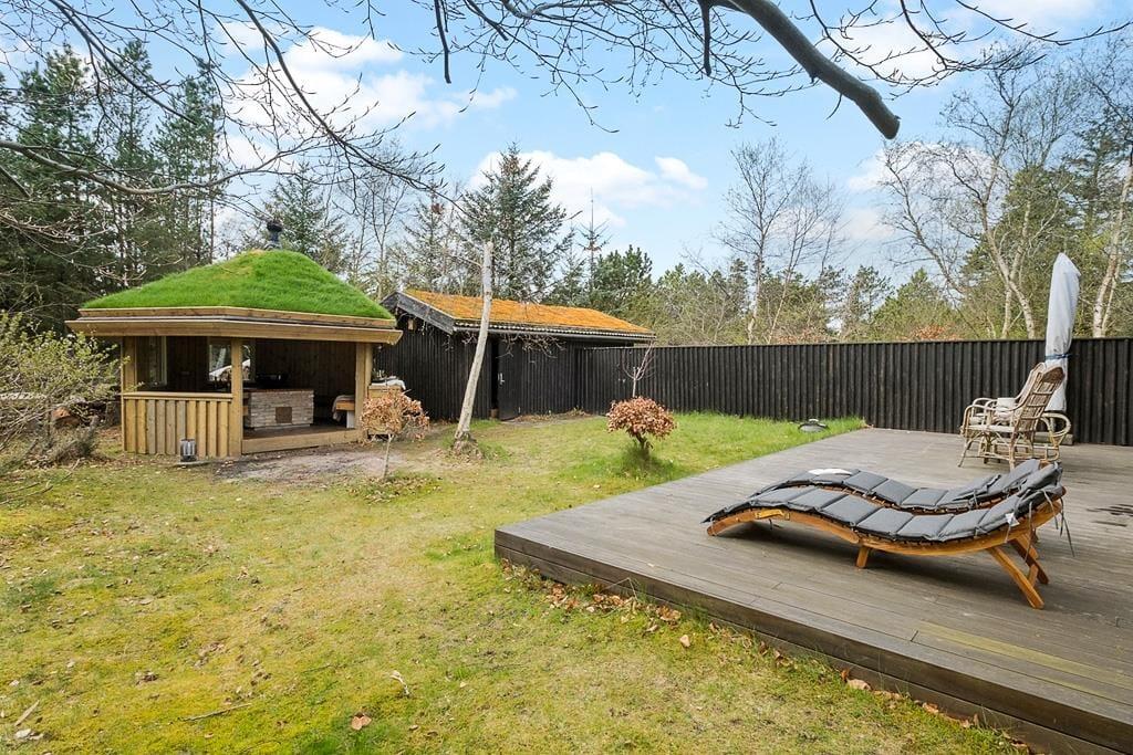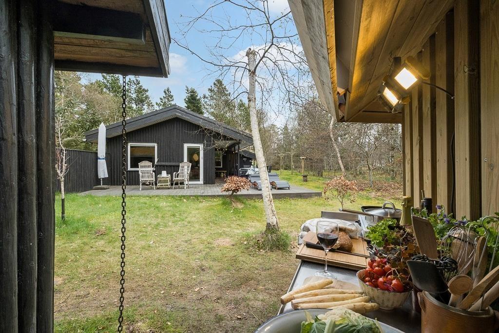 Den store naturgrund har en dejlig plæne med masser af plads til leg, boldspil og solbadning. De mange træer sørger for dejlig læ, og på den sydvendte terrasse kan man rigtig nyde sommerlivets glæder, både dag og aften.