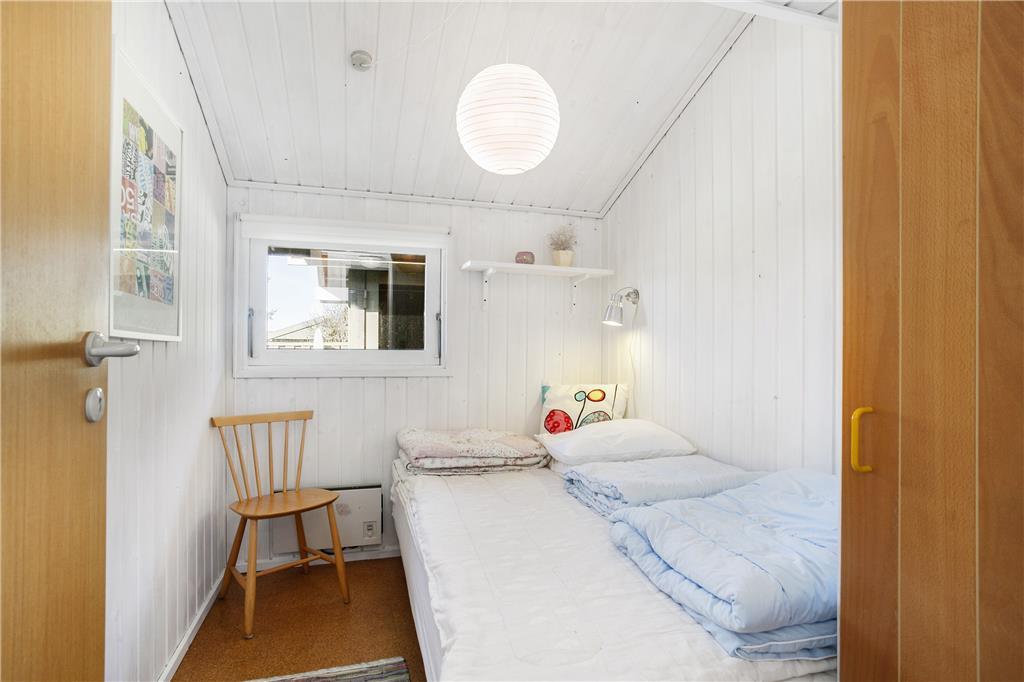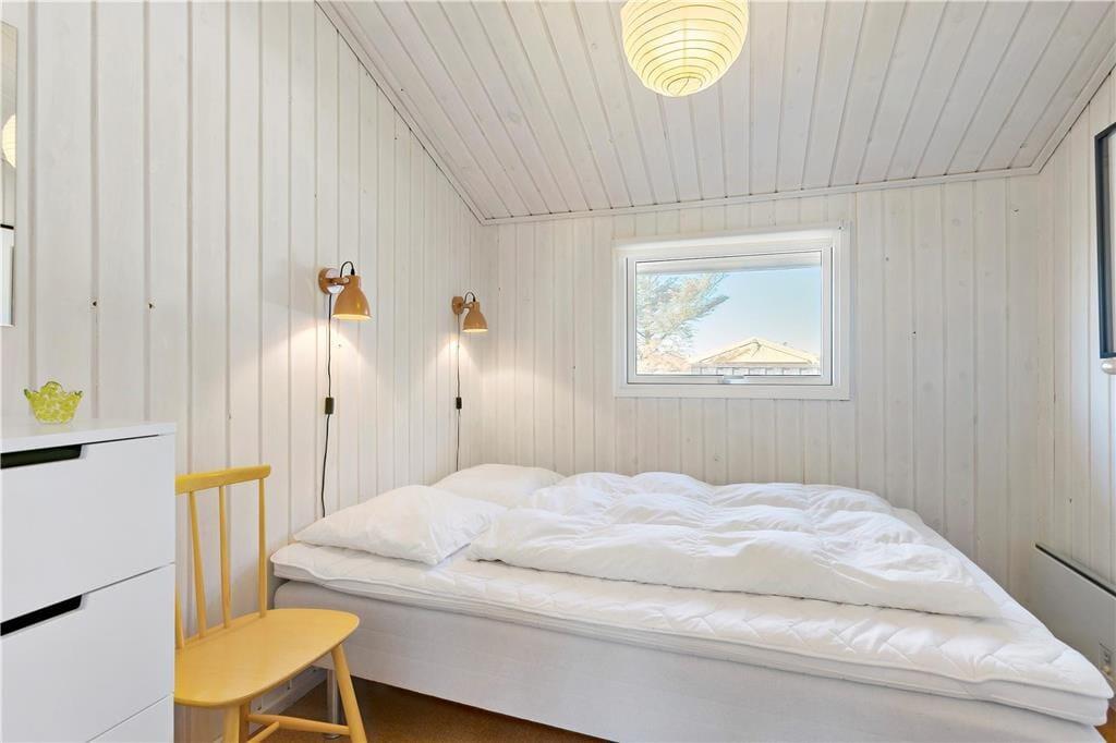 Når du træder indenfor i sommerhuset, mødes du af en lys og indbydende stue med højt til loftet, som skaber en åben og rummelig følelse. Brændeovnen tilføjer varme og hygge på de kølige aftener, og det store vinduesparti sørger for masser af naturligt lys og en smuk udsigt over naturgrunden. Køkkenet og alrummet er åbent og indbydende, så det er nemt at samles omkring madlavningen eller spille brætspil med familien. De hyggelige opholdsområder giver mulighed for både afslapning og samvær i dejlige rammer, mens du kan nyde den enkle og stilfulde indretning.