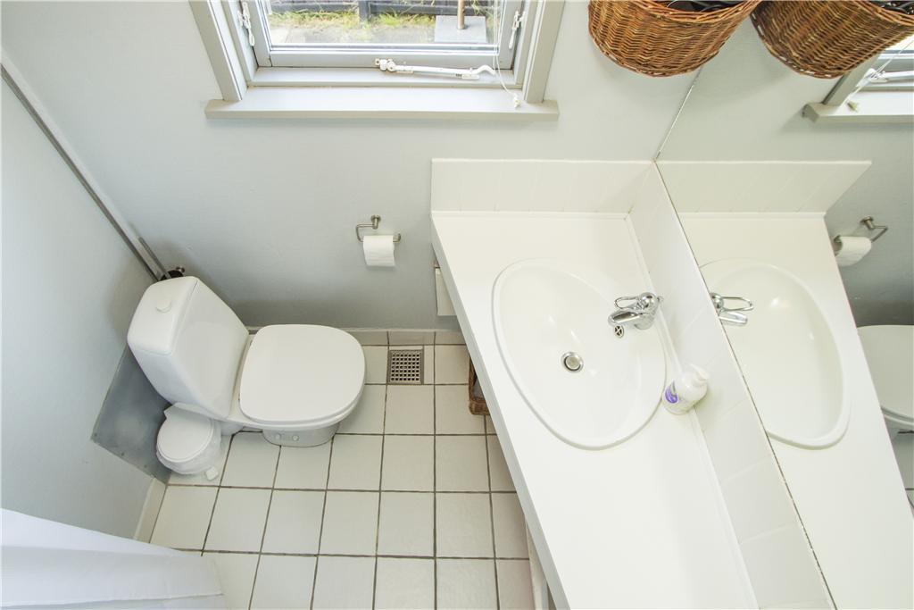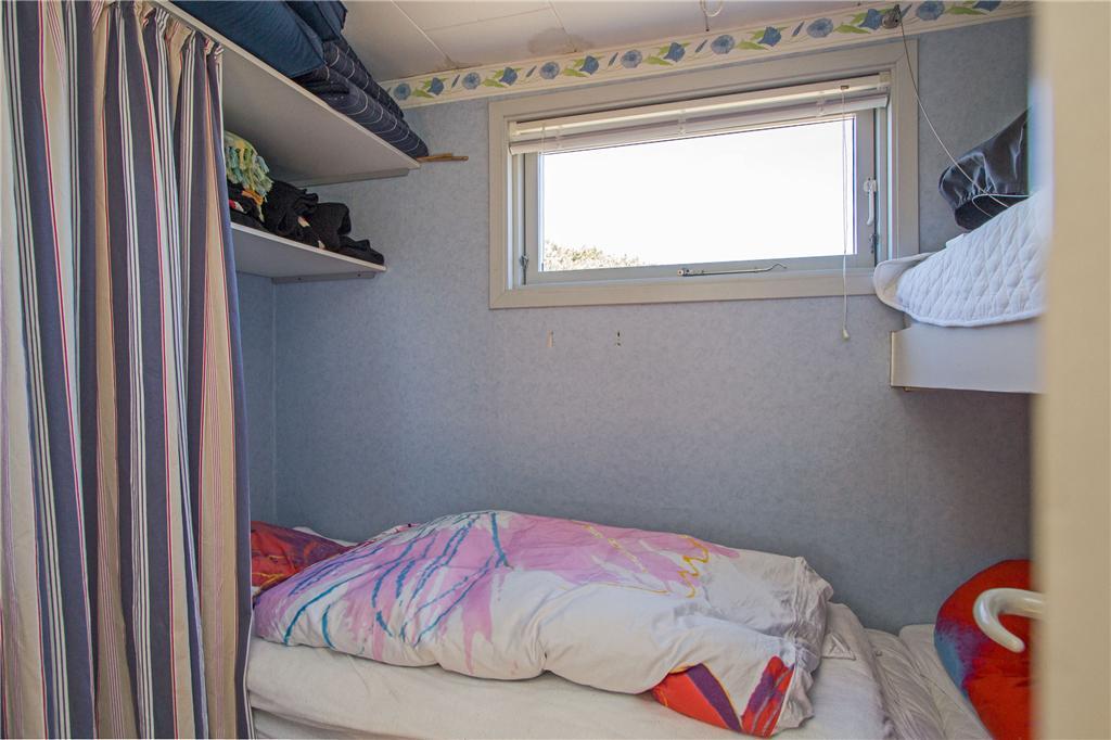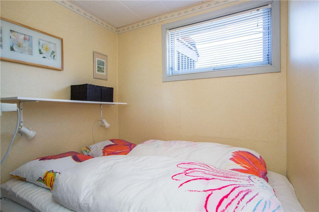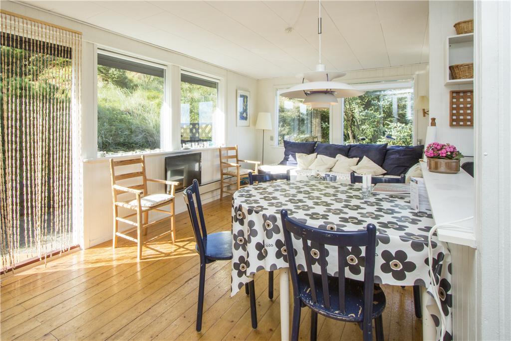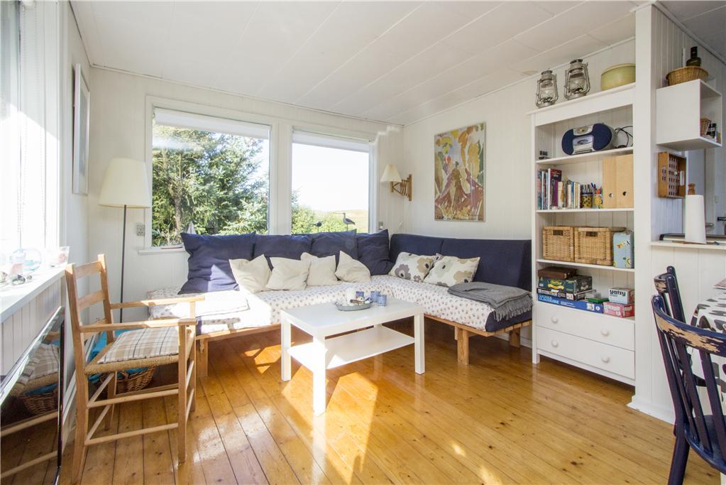 Indendørs byder sommerhuset på en lys og rummelig stue, hvor store vinduespartier trækker naturens skønhed ind i rummet. Brændeovnen står klar til at skabe hygge på de køligere dage, og her er der rig mulighed for at samles som familie til en god film eller et brætspil. Det åbne køkken skaber en naturlig forbindelse til spiseområdet, hvor alle kan samles til måltider, mens de nyder den dejlige atmosfære. Med den lyse indretning og de hyggelige detaljer er dette sommerhus et perfekt sted til afslapning og samvær. Der er god plads til at finde sin egen krog og læse en bog, eller man kan samles om en god middag, der laves i det veludstyrede køkken.