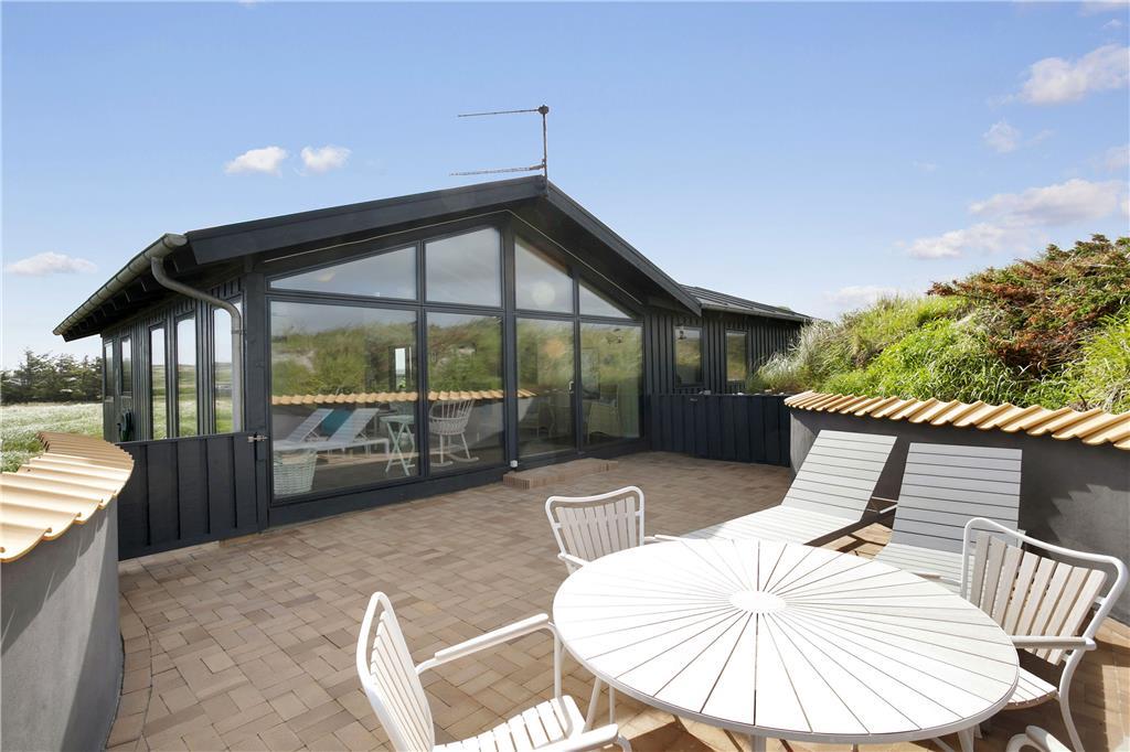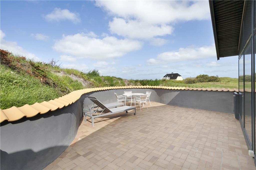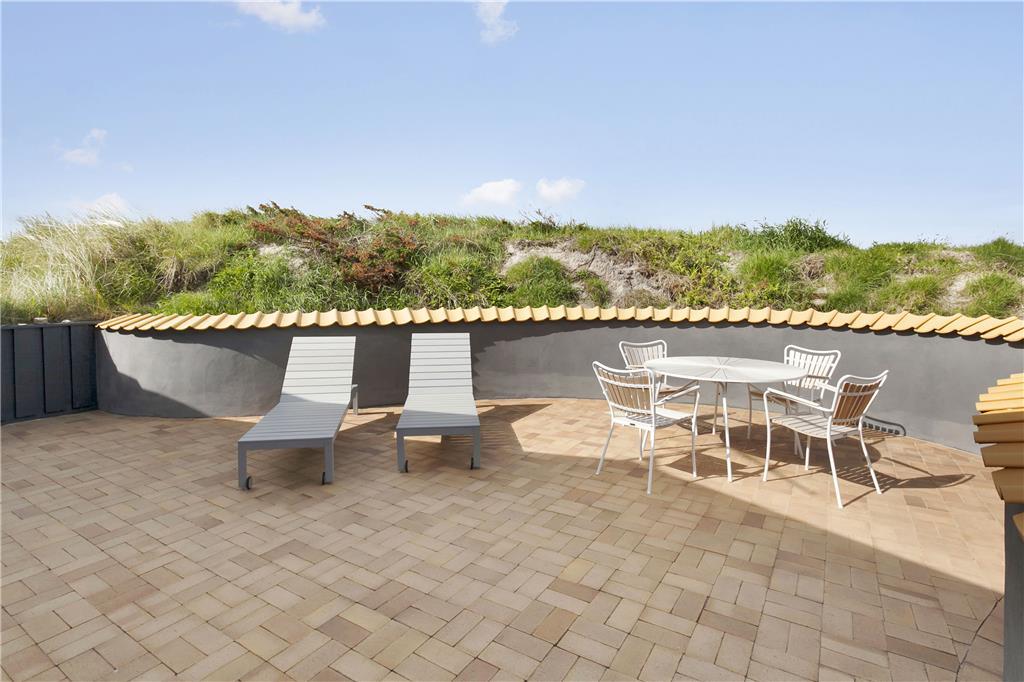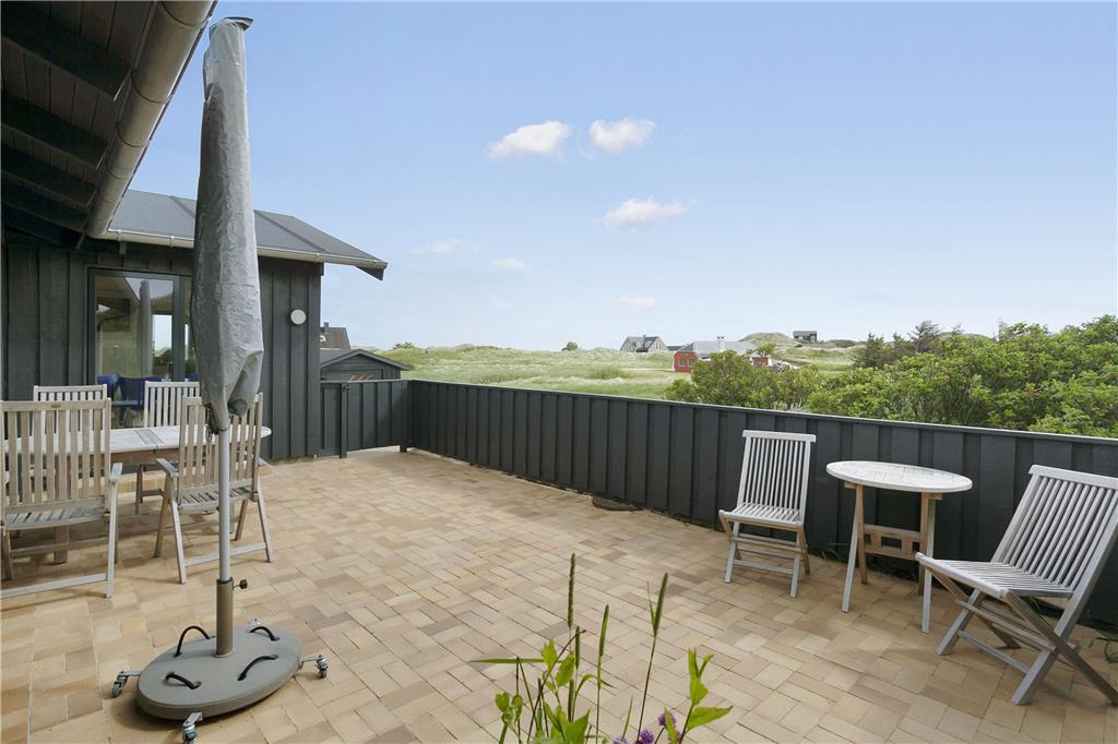 Udenfor venter dejlige terrasser, hvor du kan slappe af i solen, nyde en god middag eller bare lytte til fuglene og naturen omkring dig. Terrasserne er perfekte til både afslapning og hyggelige måltider, og med den smukke naturgrund omkring huset er du næsten garanteret en følelse af fred og ro. Uanset om du vil nyde en stille morgenkaffe på den østvendte terrasse eller tilbringe eftermiddagen i solen på den sydvendte, er der masser af plads og muligheder for at finde den perfekte spot at slappe af på.