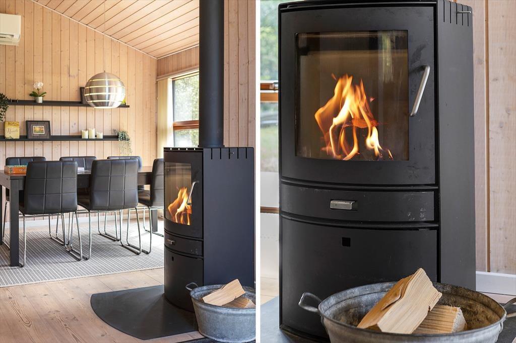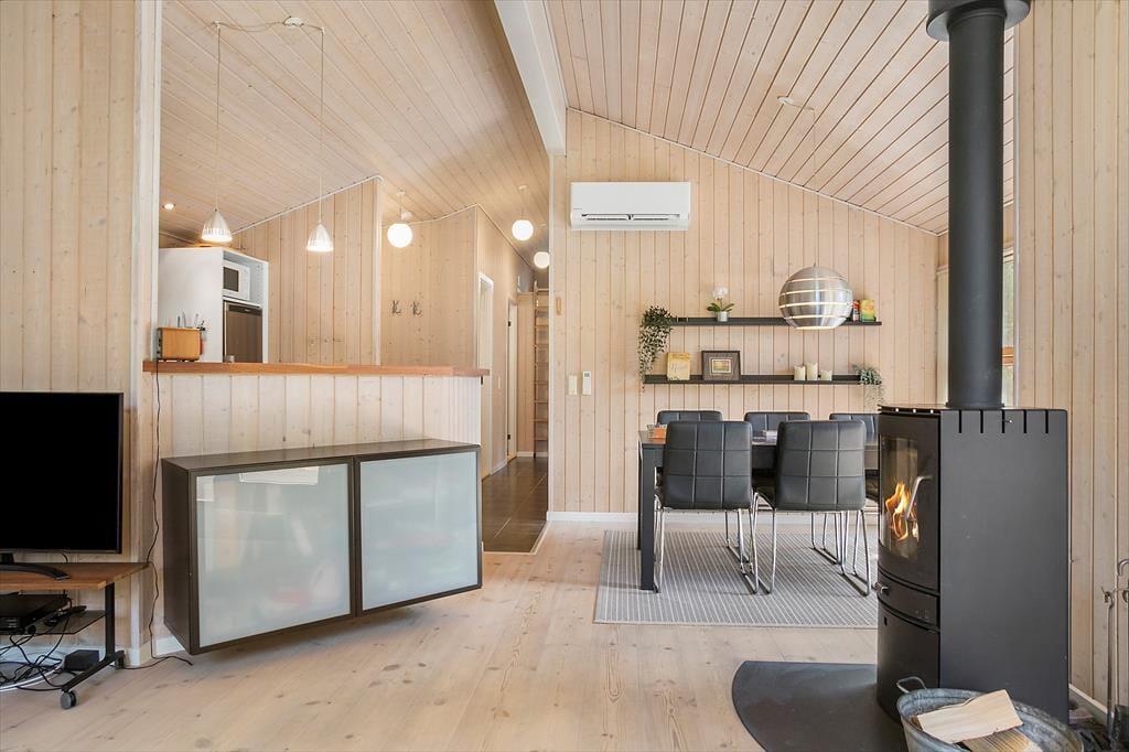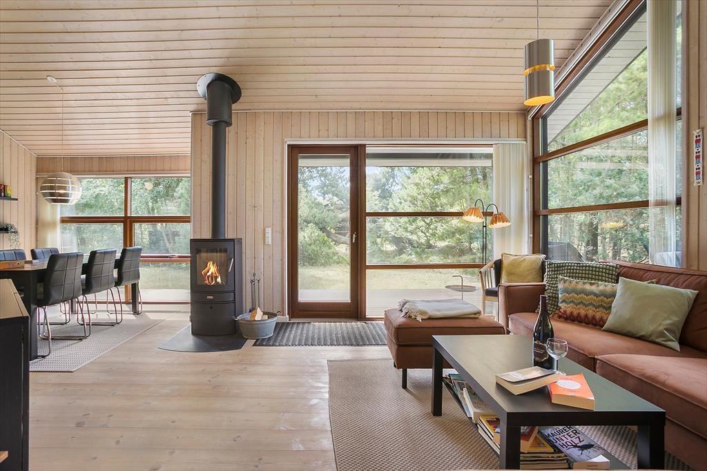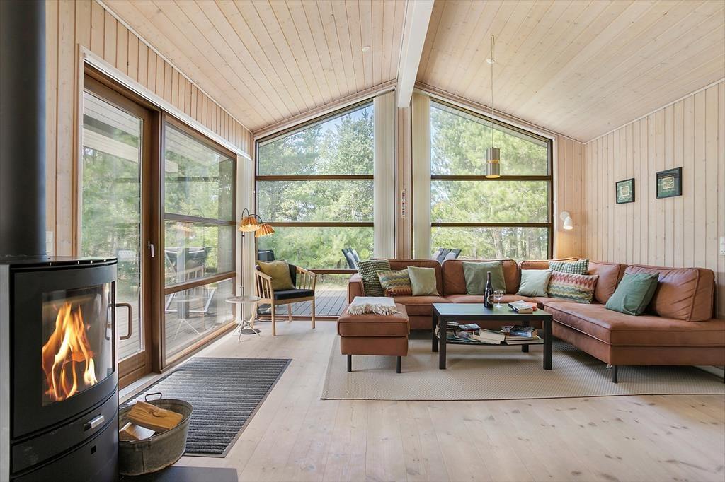 Indenfor mødes I af en lys og indbydende atmosfære, hvor det høje loft i stuen giver rummet en følelse af ekstra rummelighed. Her kan I nyde hinandens selskab foran den knitrende brændeovn eller samles til middag ved spisebordet. De store vinduespartier giver et dejligt lysindfald og giver jer samtidig mulighed for at følge med i, hvad der sker i haven. Sommerhuset har også et flot badeværelse, hvor I kan forkæle jer selv med at varme op i saunaen. Hele huset er indrettet med komfort i højsædet, og der er rig mulighed for at finde hyggelige kroge, hvor I kan trække sig tilbage.