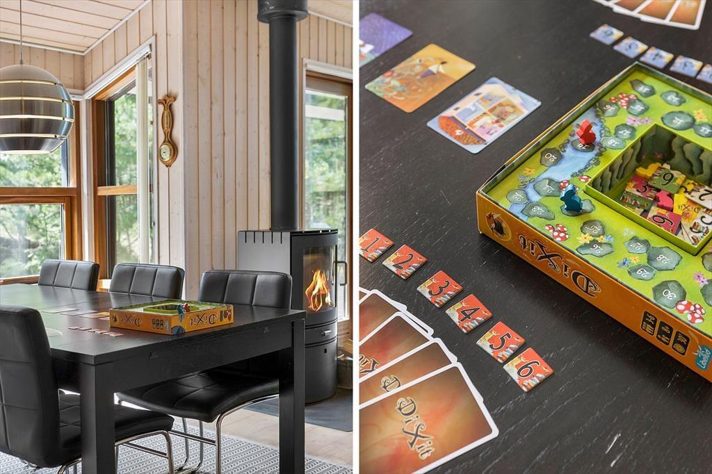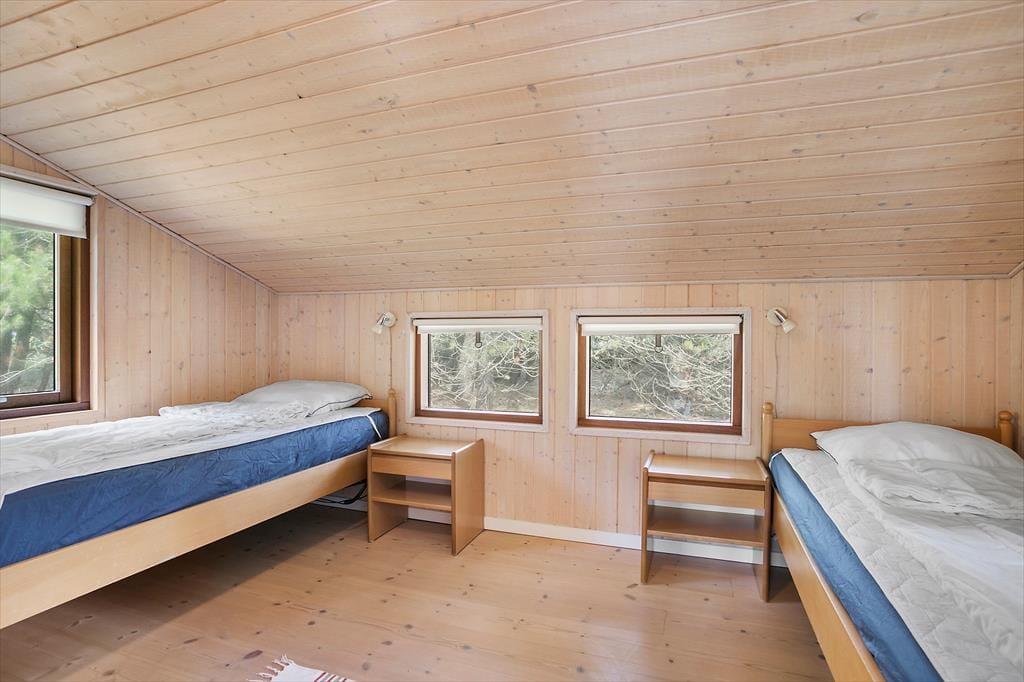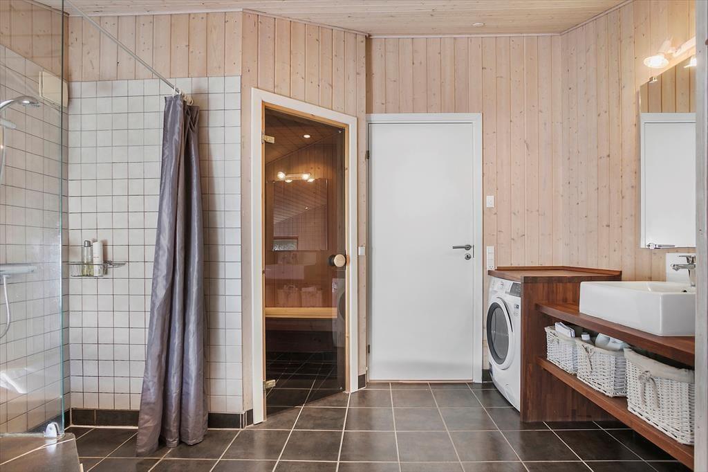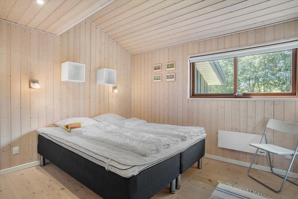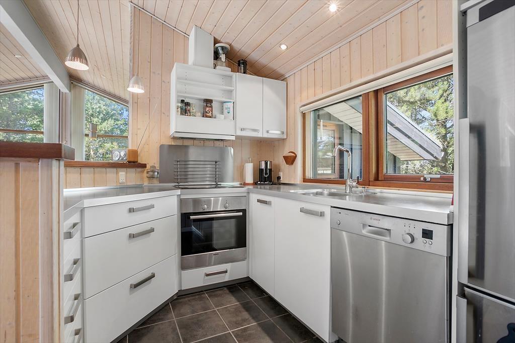 Indenfor mødes I af en lys og indbydende atmosfære, hvor det høje loft i stuen giver rummet en følelse af ekstra rummelighed. Her kan I nyde hinandens selskab foran den knitrende brændeovn eller samles til middag ved spisebordet. De store vinduespartier giver et dejligt lysindfald og giver jer samtidig mulighed for at følge med i, hvad der sker i haven. Sommerhuset har også et flot badeværelse, hvor I kan forkæle jer selv med at varme op i saunaen. Hele huset er indrettet med komfort i højsædet, og der er rig mulighed for at finde hyggelige kroge, hvor I kan trække sig tilbage.
