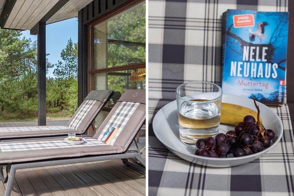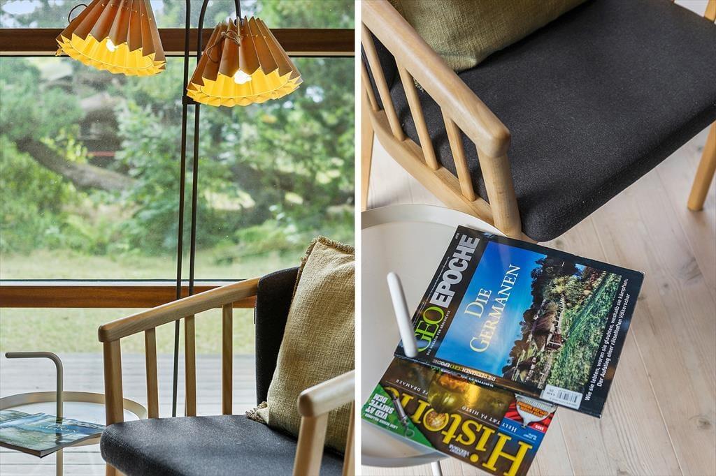 Det store udendørsareal omkring sommerhuset er noget helt særligt. De ugenerede terrasser rundt om huset giver mulighed for at finde sol hele dagen, uanset hvilken retning solen kommer fra. Der er både overdækkede områder til de varme dage, hvor I ønsker skygge, og åbne områder til at nyde solens stråler. Det er den perfekte ramme til at nyde morgenkaffen, læse en god bog eller tilberede lækre måltider på grillen. Om aftenen kan I sidde ude og nyde de rolige omgivelser, mens I ser solen gå ned, og den fredelige atmosfære i naturen sænker sig omkring jer.