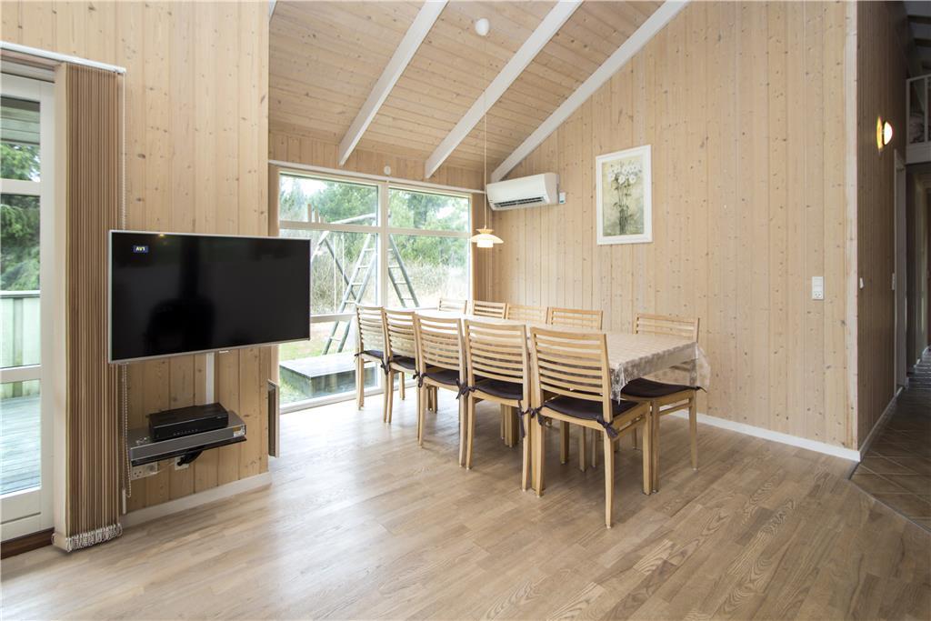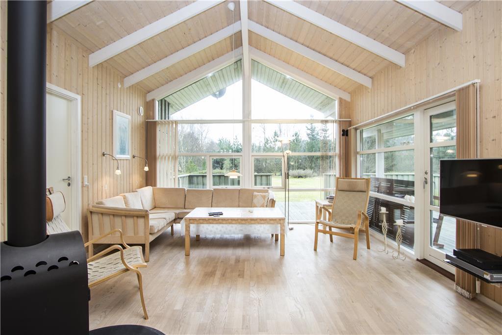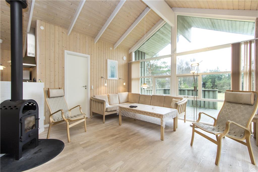 Dette dejlige sommerhus ligger på en stor naturgrund og byder på masser af plads til både leg og afslapning. Her kan du samles med familie eller venner og nyde ferien i rolige og naturskønne omgivelser. Huset har en lys og indbydende stue med højt til loftet, store vinduespartier, der giver et skønt lysindfald, og en hyggelig brændeovn, som skaber den perfekte stemning på en kølig aften. Det er det ideelle valg for dem, der ønsker at være tæt på naturen og samtidig have komfortable rammer at slappe af i.