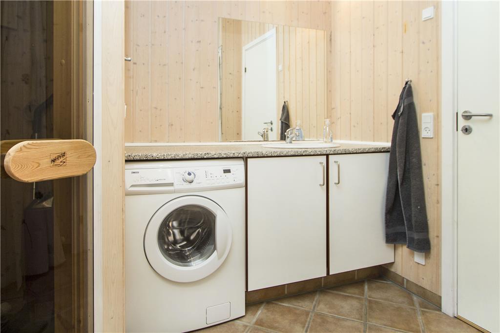 Når du træder ind i dette sommerhus, bliver du mødt af et lyst og åbent køkken-alrum, hvor både madlavning og samvær kan foregå i samme rum. Køkkenet er funktionelt og indbydende, og de store vinduespartier giver et skønt kig ud over naturgrunden, som byder på masser af plads til spil og leg. Stuen er rummelig med højt til loftet og en brændeovn, som skaber hygge og varme, når den danske sommerluft bliver lidt for kølig. Her er plads til både afslapning og samvær med dem, du holder af. Sommerhuset har også et dejligt badeværelse, hvor du kan forkæle dig selv med et spabad eller en afslappende sauna – den perfekte måde at slutte en lang dag på.