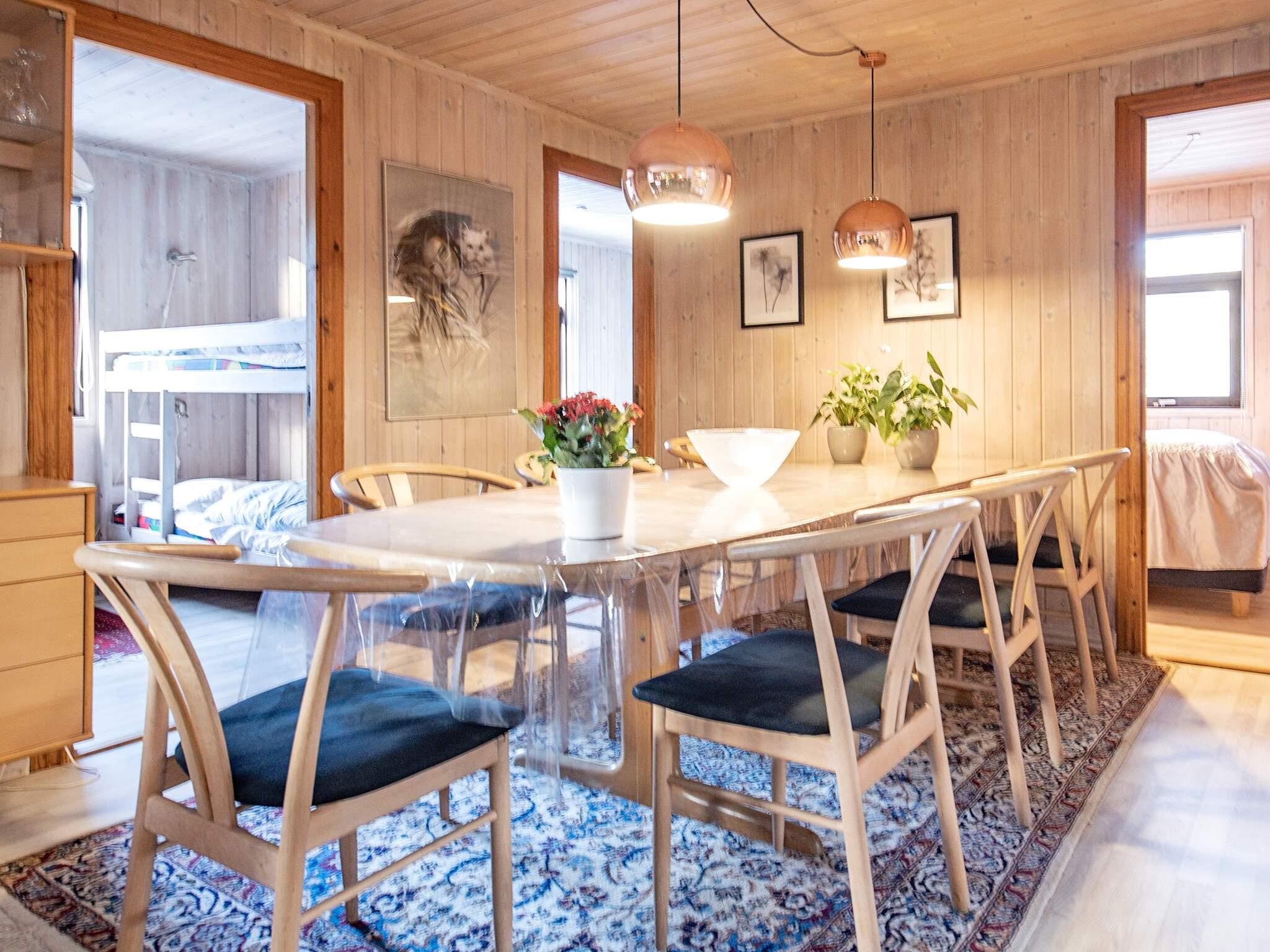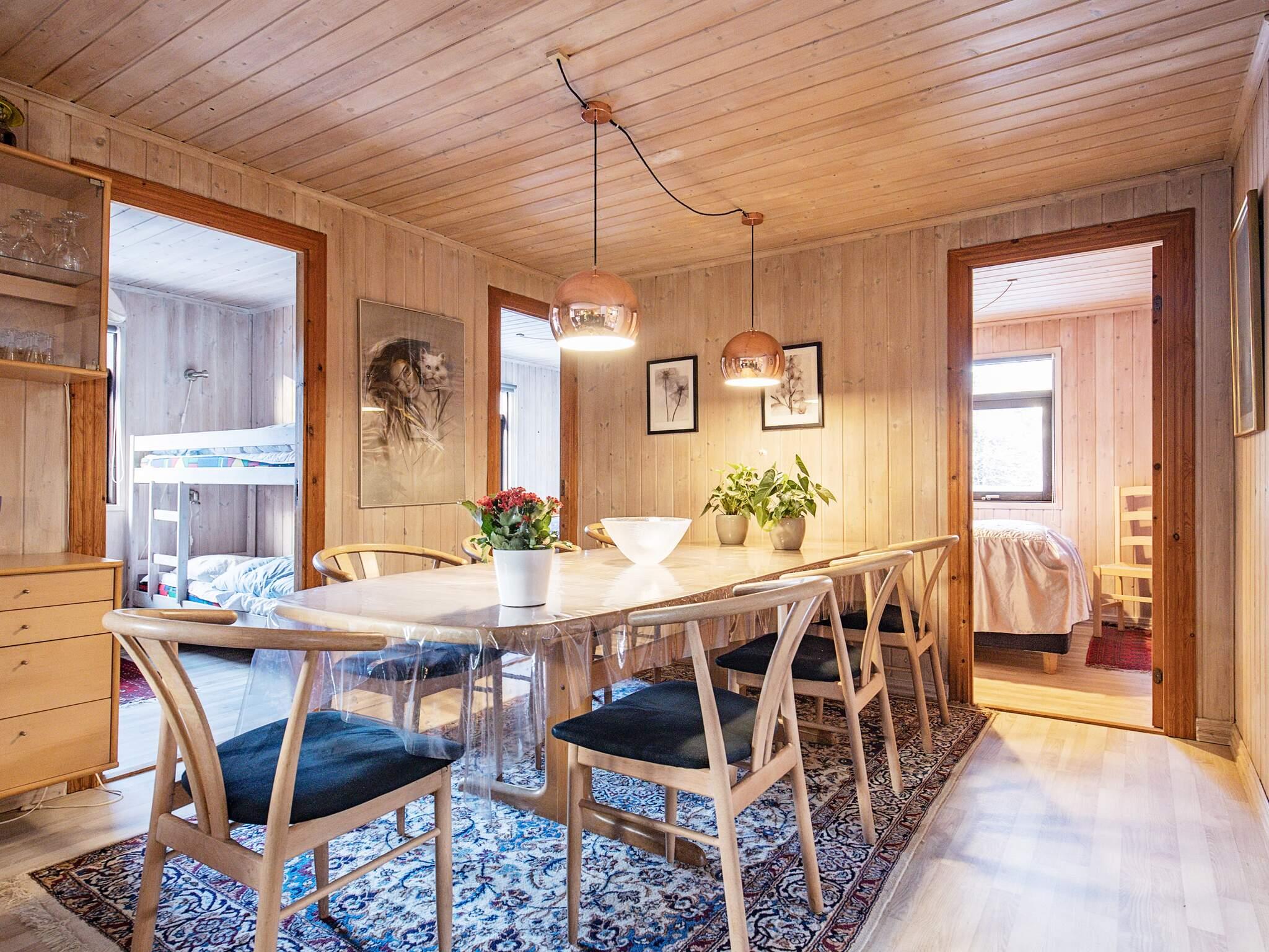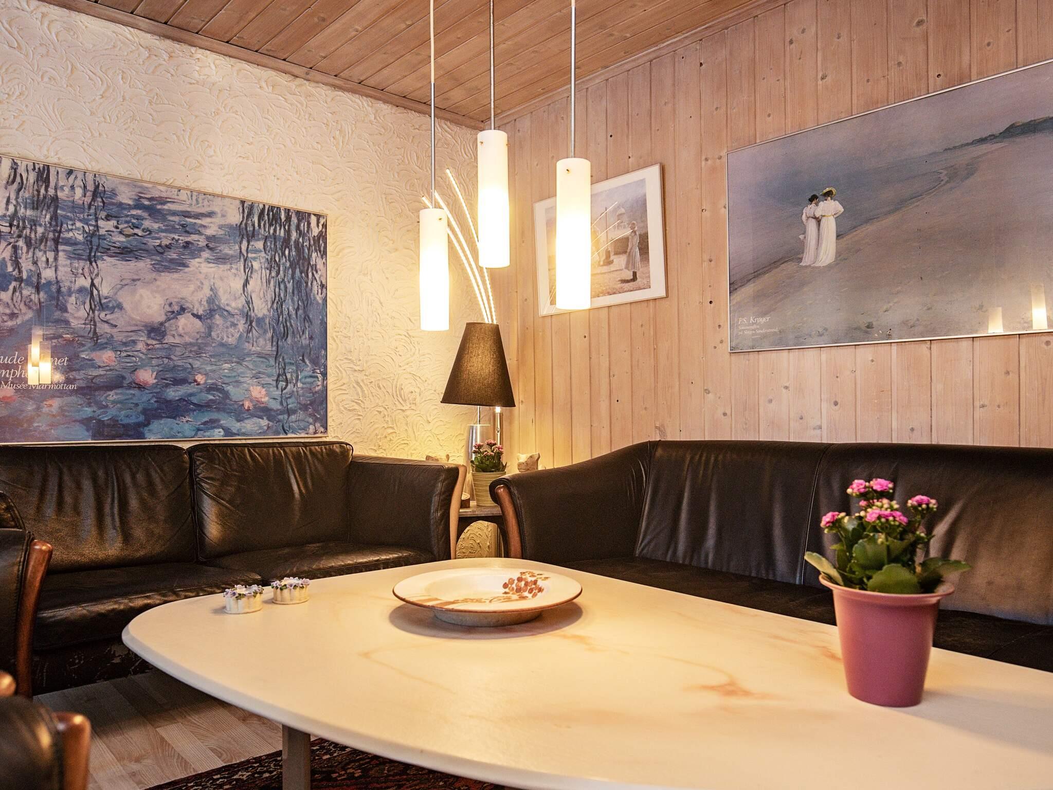 Indretningen er i klassisk dansk sommerhusstil med hovedvægten lagt på trivsel og hygge. Ejeren har med sikker hånd og sans for lys og farver møbleret og udsmykket huset, så det fremstår særdeles velegnet til ferieophold. Tv-kanaler kan ses via Viasat Guldpakke. Til hygge om aftenen og billig opvarmning er der brændeovn i opholdsafdelingen. Der er installeret en energibesparende luft/luft varmepumpe. Der er Highspeed internet 100/100 mbit.