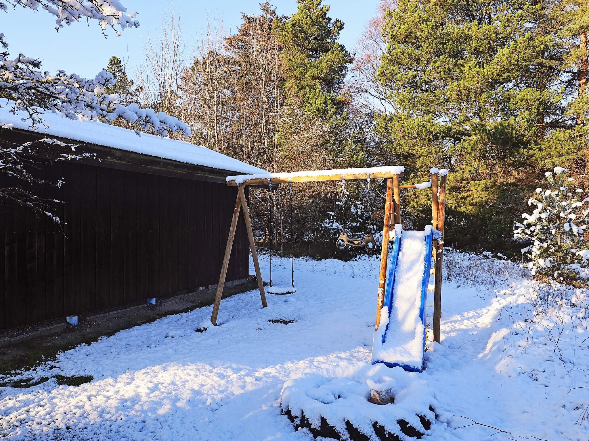 Der er stor, åben terrasse mod øst, syd og vest, her kan solen nydes dagen igennem og det er nemt at finde en god, ugenert krog til solbadning. Fra terrassen er der direkte adgang til plænen, som er plan og særdeles velegnet til forskellige udendørs aktiviteter som f.eks. boldspil og leg med børnene. Der er opsat både gynger og sandkasse.
