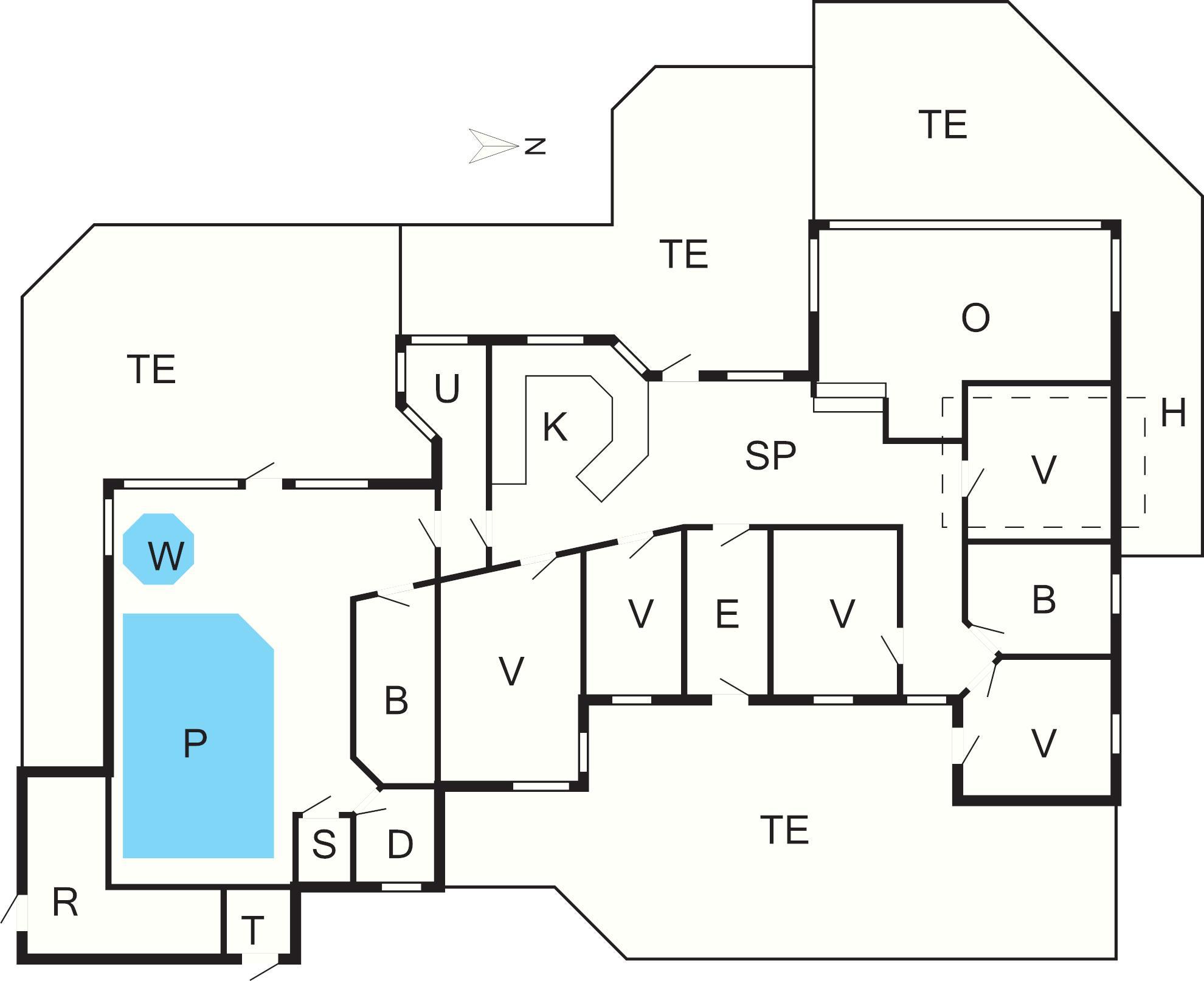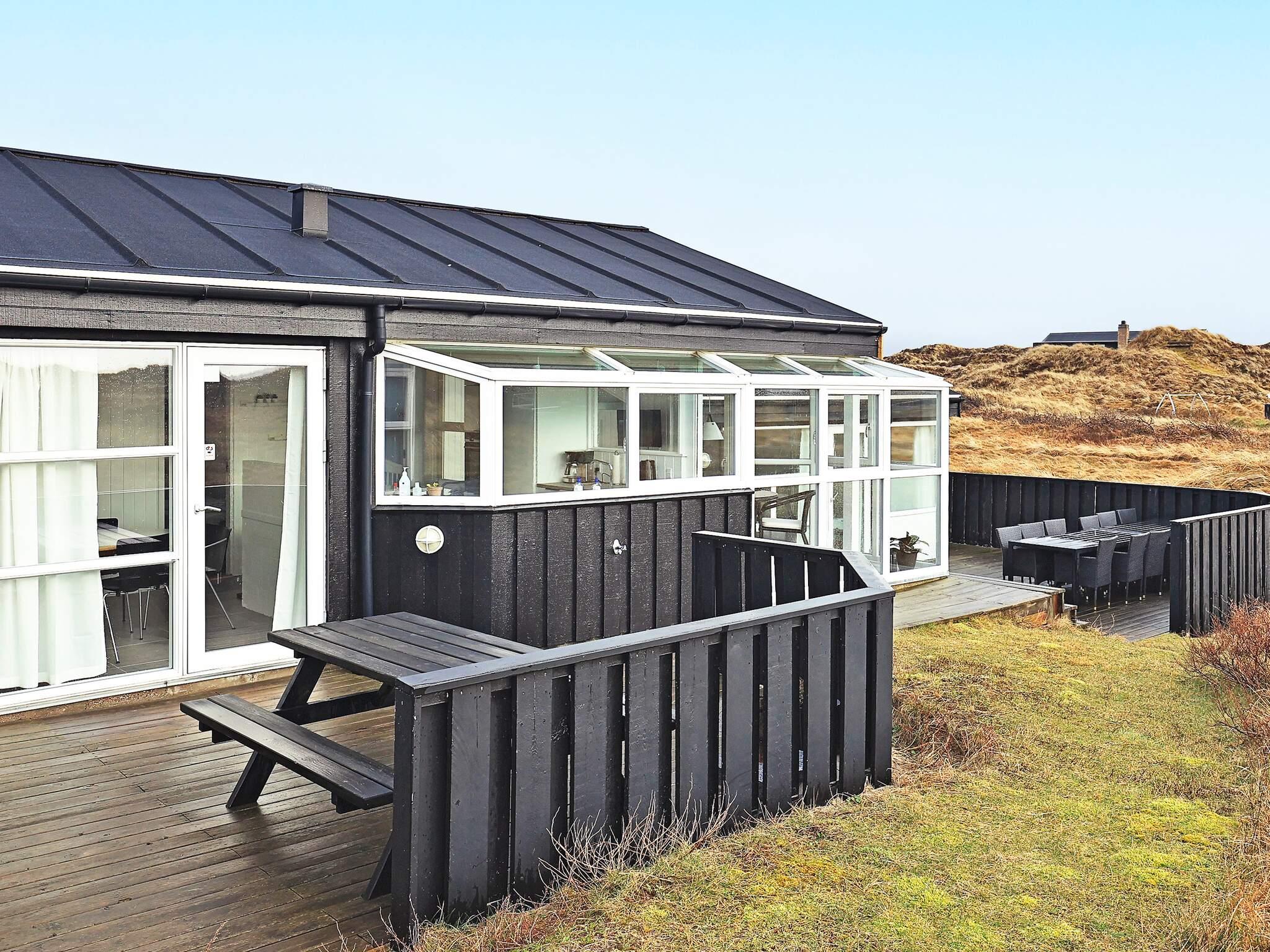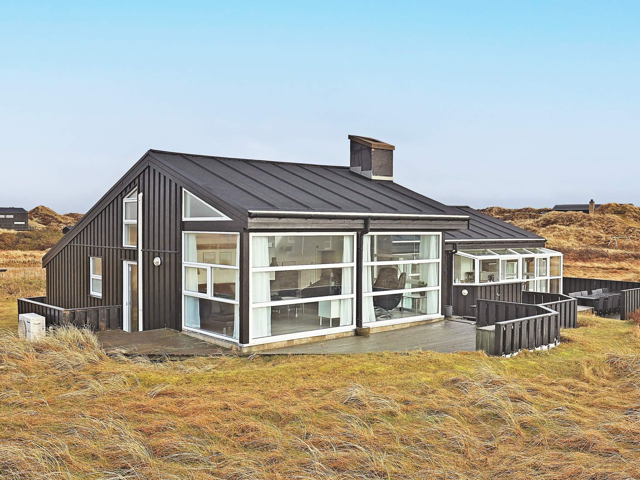 Stort sommerhus med swimmingpool, spabad og sauna beliggende i 1. række ved Rødhus brede sandstrand. Huset er på 193 m² og indrettet med 5 rummelige soveværelser, swimmingpool og spabad samt sauna og 2 fuldt udstyrede badeværelser, udestue og naturligvis et stort, kombineret køkken og opholdsareal. Der er tv og musikanlæg i både opholdsstue og udestue. Herfra er der adgang til husets terrasse, der indbyder til udendørs ophold. I udestuen kan I sidde i fred og ro og nyde udsigten over klitterne.